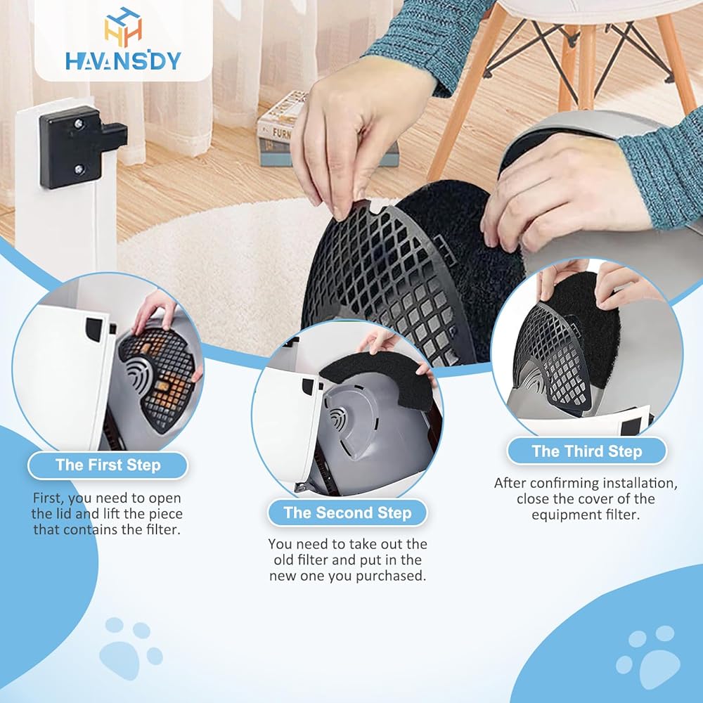 【سهلة التركيب】قل وداعًا للأدوات والتعليمات المعقدة. تم تصميم فلاتر صندوق فضلات القطط هذه للتركيب السريع والخالي من المتاعب، مما يجعل الصيانة أمرًا سهلاً لأصحاب الحيوانات الأليفة المشغولين.