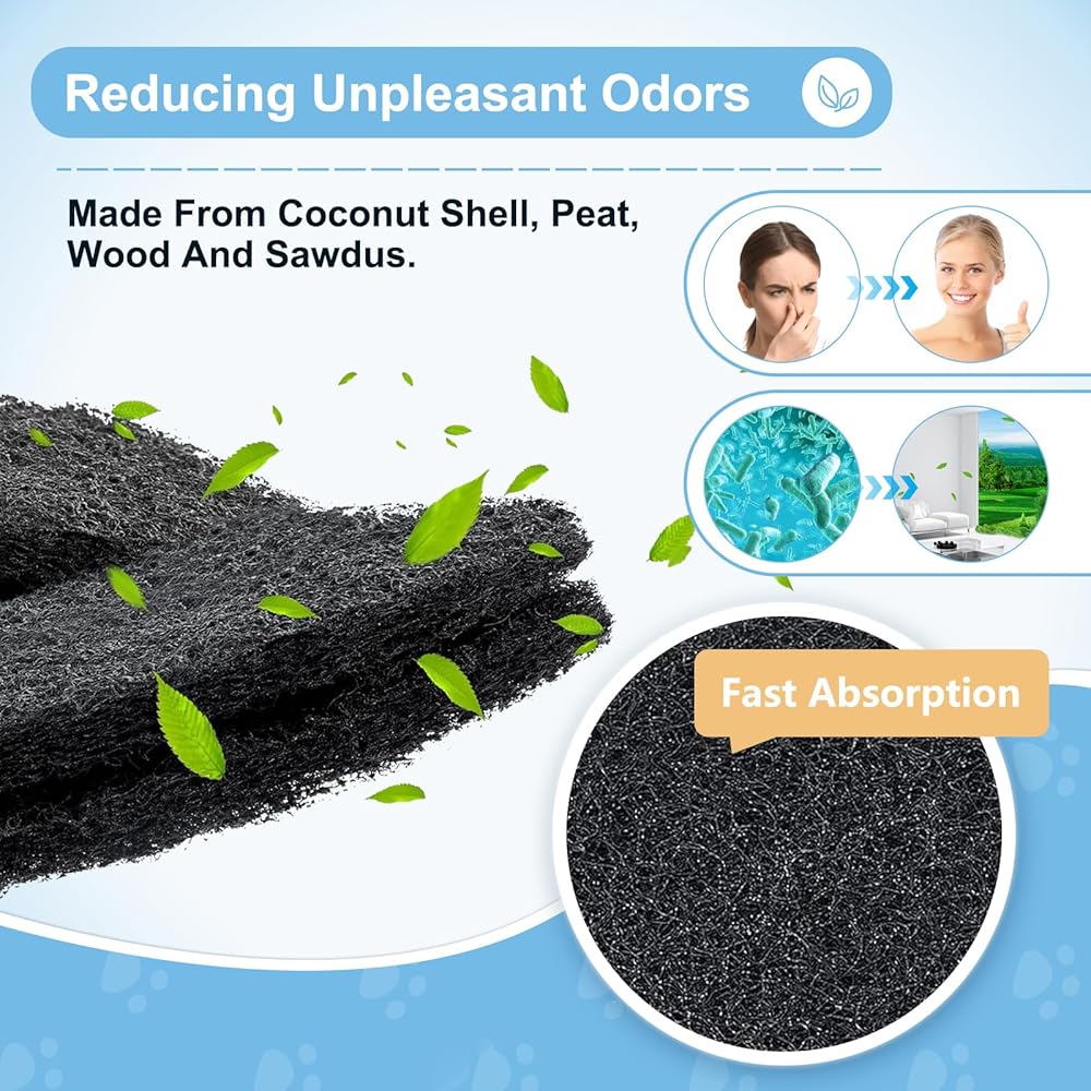 【إزالة متقدمة للروائح】تستخدم مرشحات الكربون الخاصة بنا الكربون المنشط بالألياف لتقليل الروائح الكريهة الناتجة عن فضلات حيواناتك الأليفة بشكل فعال، وهي متوافقة مع LR-4، مما يحافظ على رائحة منزلك منعشة ونظيفة.