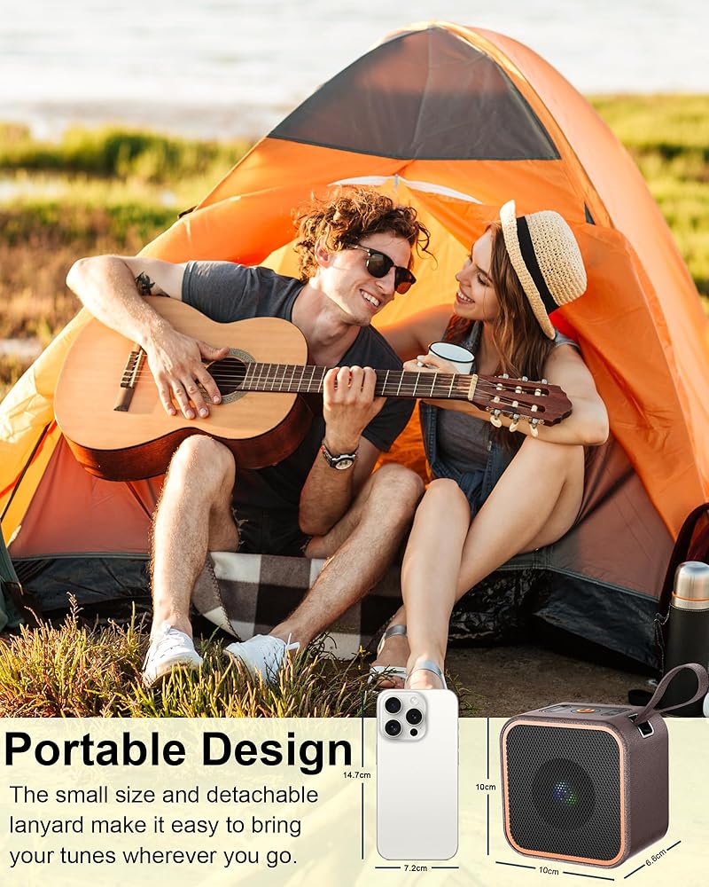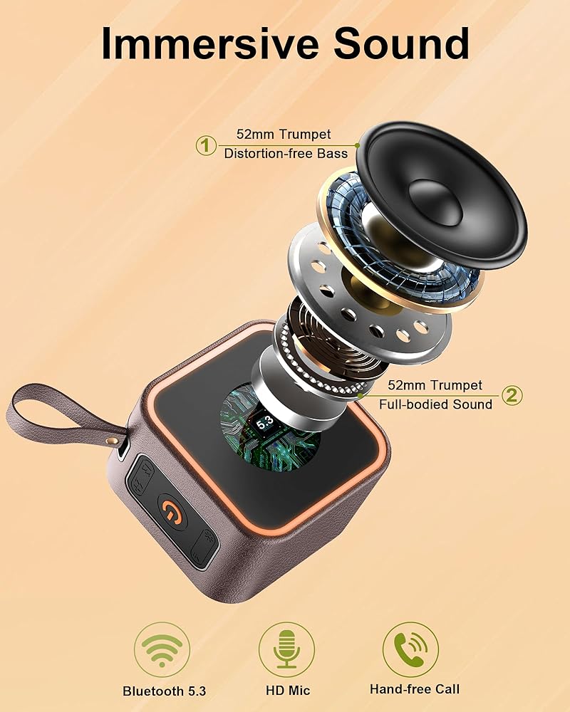Advanced Bluetooth 5.3: Equipped with the latest Bluetooth 5.3 chip, this Bluetooth Speaker ensures fast pairing and a stable connection, speakers bluetooth wireless can normally connect the device from 50 unobstructed feets away even under difficult conditions and the signal is not disturbed. It also features a built-in microphone for high-quality calls and automatic reconnection to the last device used.