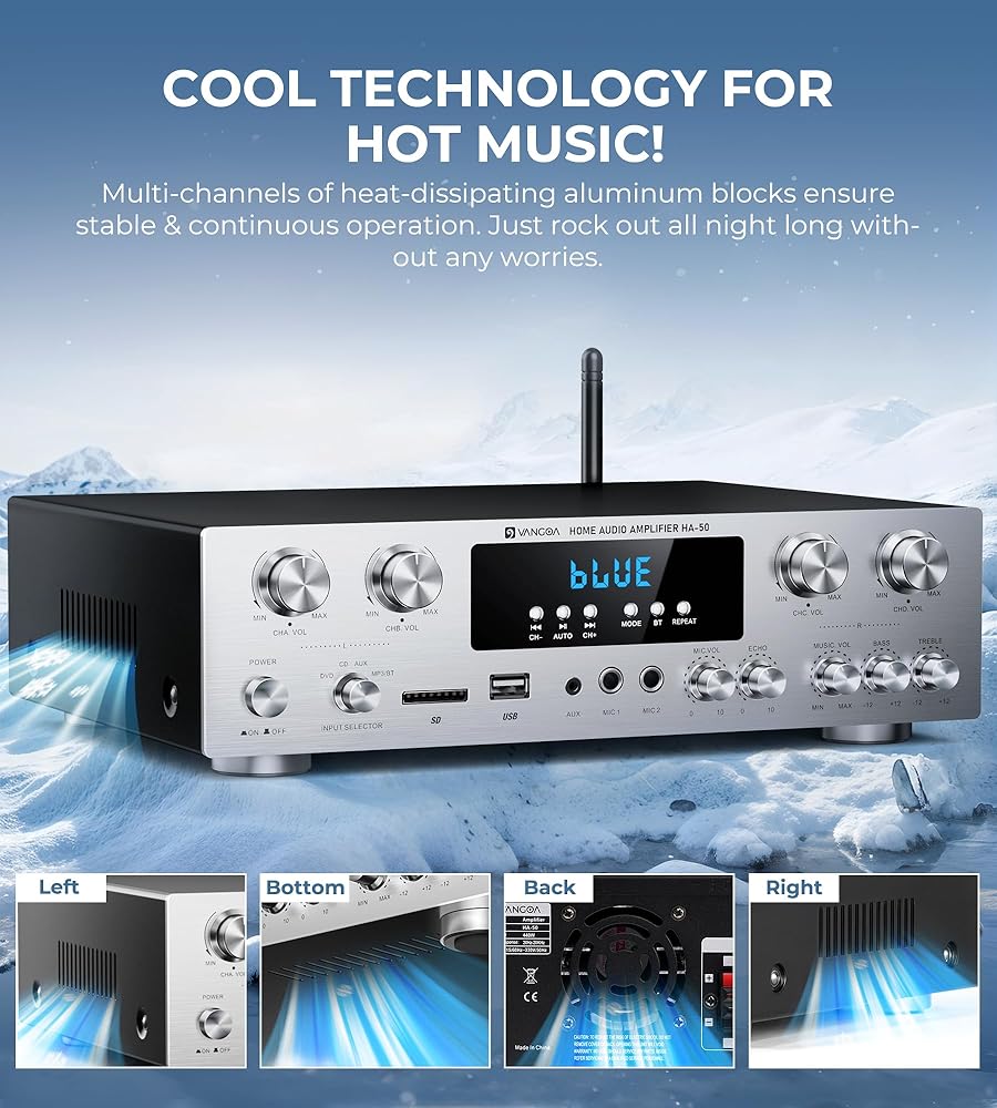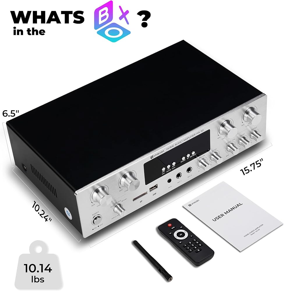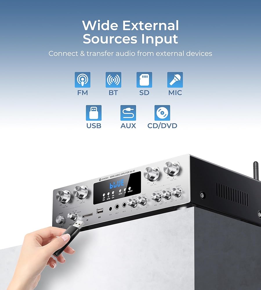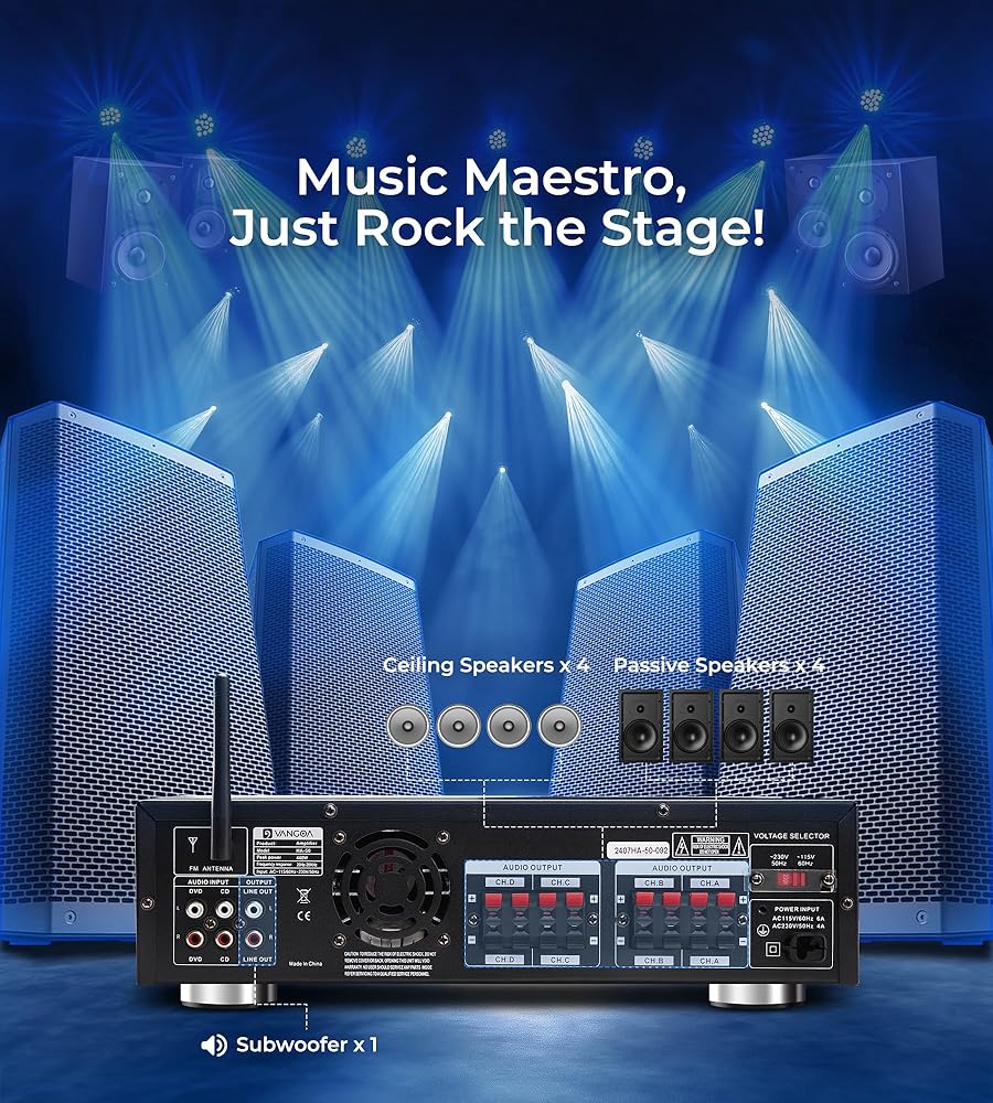 • شاشة مدمجة بأزرار LED وأزرار مادية: على عكس الأجهزة الأخرى ذات الشاشة النقية، يحتوي جهاز الاستقبال اللاسلكي المدمج للستيريو المنزلي على شاشة LED مدمجة وأزرار متينة، مما يوفر ردود فعل لمسية، ووصولاً سريعًا إلى الوظائف، وقدرة متعددة المهام في وقت واحد. نحن نقدم خدمة ما بعد البيع لمدة عام واحد لنظام الصوت المنزلي ذو 4 قنوات أمبير.