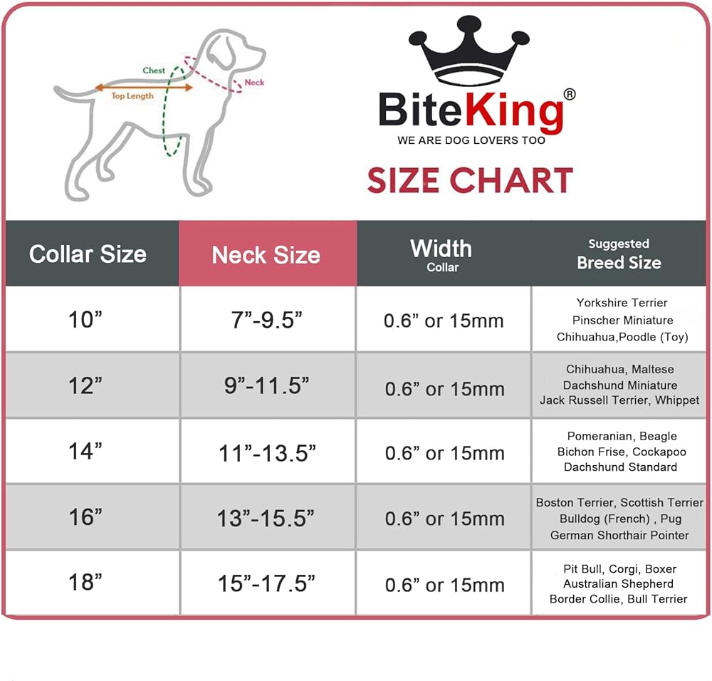المقاس والملاءمة: قياس العرض 15 مم (0.6 بوصة)، والطول 18 بوصة. يرجى ملاحظة أن هذه السلسلة غير قابلة للتعديل، قم بالقياس حول رقبة كلبك باستخدام خيط أو شريط حيث تريد وضع طوق السلسلة، ثم أضف حوالي 1-2 بوصة