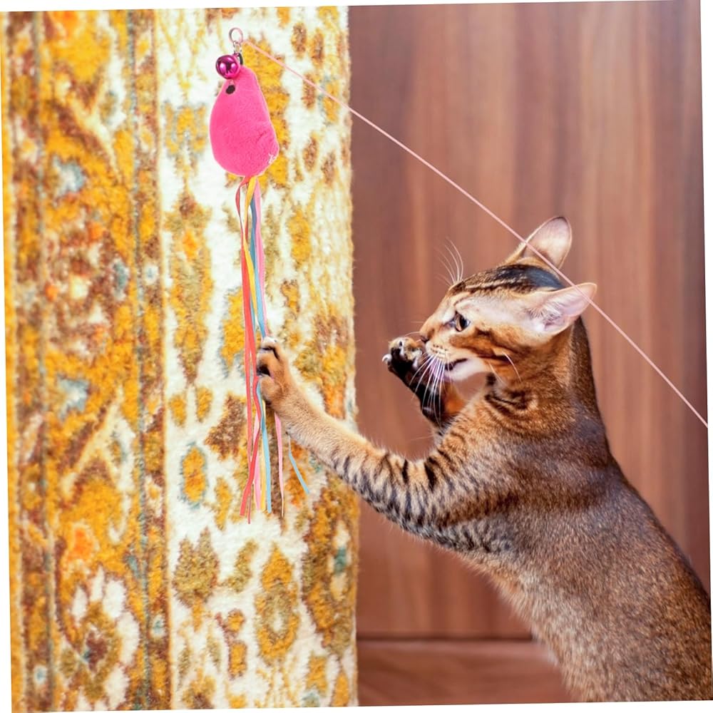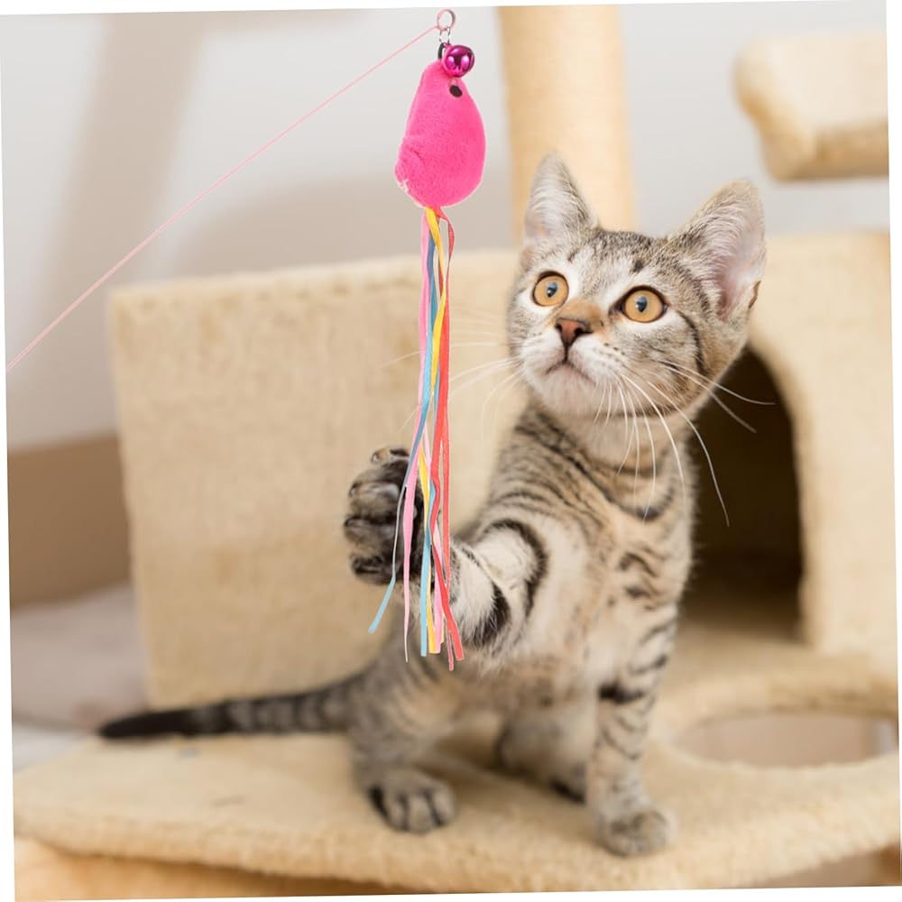 MERRYHAPY القط دعابة اللعب الحيوانات الأليفة القط الصيد القطب لعبة القط لعبة عصا إغاظة الشنق لوازم القط لعبة عصا القط للقطط إغاظة عصا التفاعلية إغاظة العصي الحديد سلك هريرة الأرجوحة