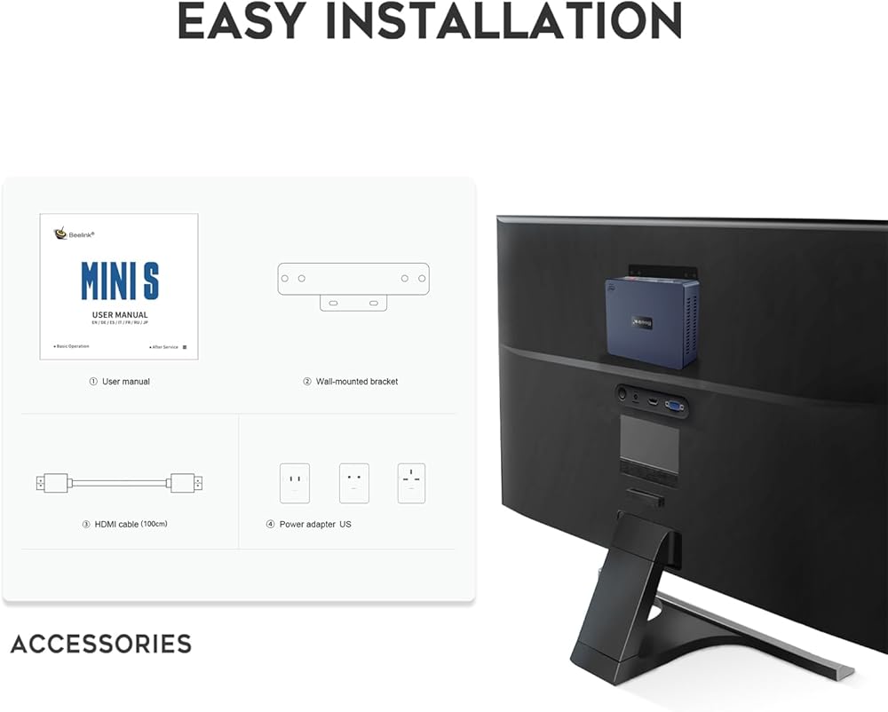 كمبيوتر صغير Beelink، Celeron N5095 (يصل إلى 2.9 جيجا هرتز) كمبيوتر صغير، 8 جيجا DDR4 و256 جيجا SSD كمبيوتر صغير قابل للتوسيع، متضمن HDMI مزدوج 4K، WiFi5، BT5.0، جيجابت إيثرنت، نظام تشغيل، حامل مثبت على الحائط