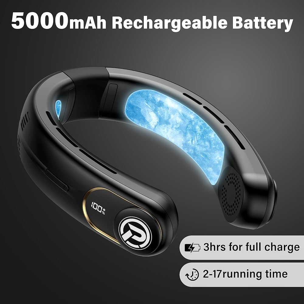 مكيف هواء للرقبة، مروحة رقبة محمولة بثلاث سرعات، مكيف هواء شخصي يعمل ببطارية قابلة لإعادة الشحن بقدرة 5000 مللي أمبير في الساعة، مكيف هواء محمول، مروحة رقبة بدون شفرات بدون استخدام اليدين للهدايا، المشي في الهواء الطلق، السفر في الأماكن المغلقة