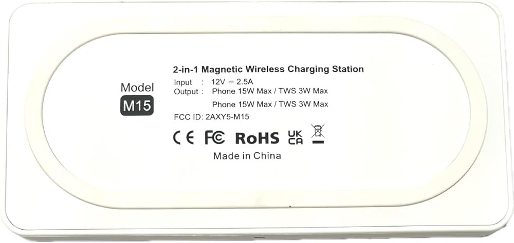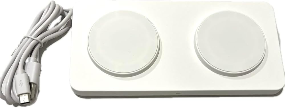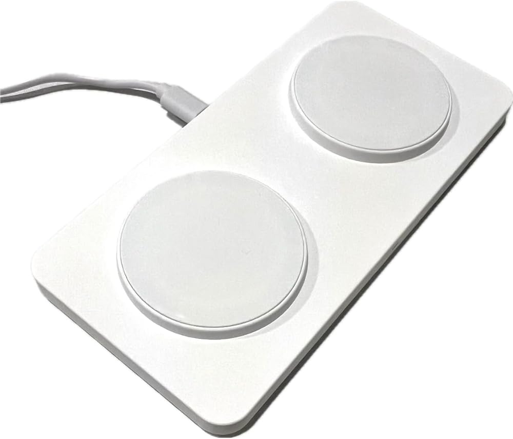 EDS M15 لوحة شحن لاسلكية 2 في 1 مغناطيسية، لهواتف Apple iPhone 15/14/14 Pro/13 Pro Max/Pro/Mini/12/11، Airpods 3/2/Pro، Samsung S22/S21، لوحة شحن مزدوجة، 15 وات - محول غير متضمن (أبيض)