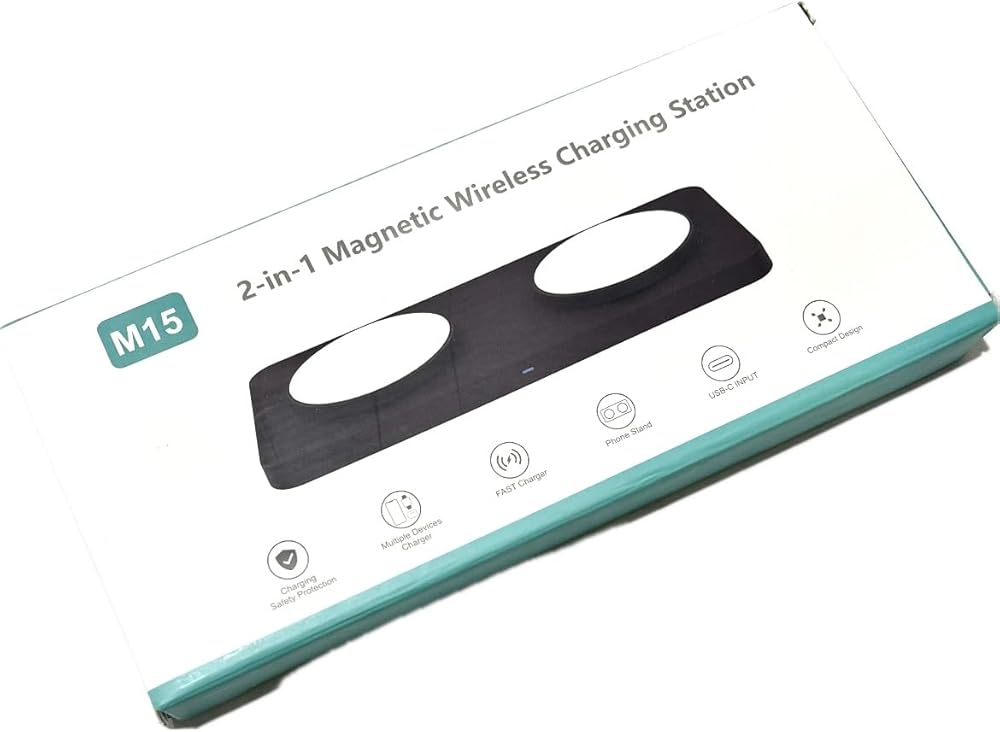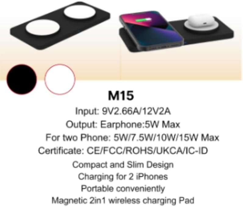 EDS M15 Magnetic 2 in1 wireless charging pad, for Apple iPhone 15/14/14 Pro/13 Pro Max/Pro/Mini/12/11, Airpods 3/2/Pro, Samsung S22/S21, Dual Charging Pad, 15W - Adapter not included
