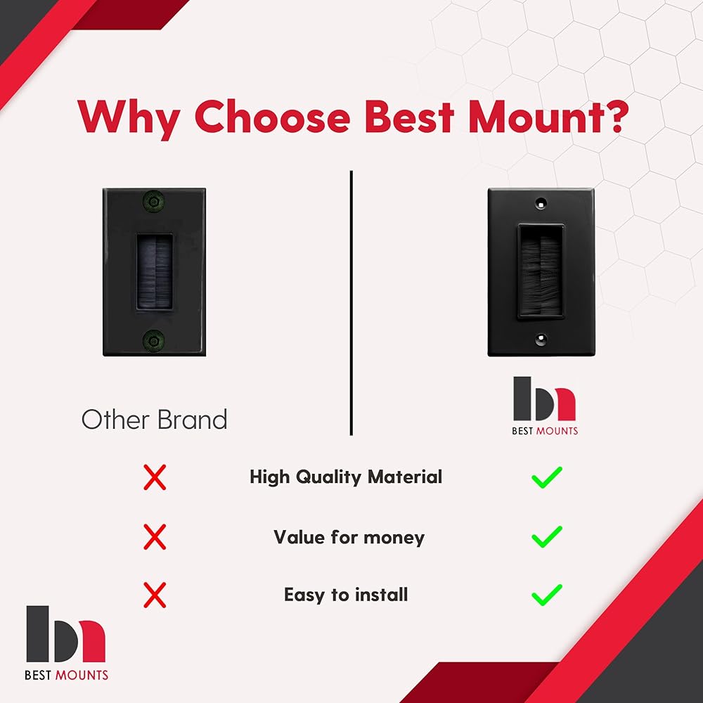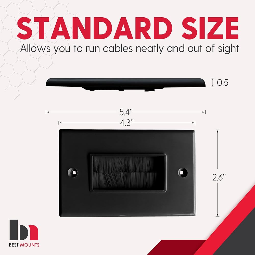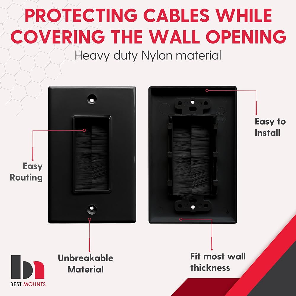 BestMounts - 10 عبوات من لوحات الحائط للفرشاة - لوحة فرشاة فردية على طراز ديكورا لمجموعة إدارة الكابلات في الحائط - تمرير الكابل من خلال إدخال الأسلاك والتلفزيون عالي الدقة وHDMI والمسرح المنزلي، أسود