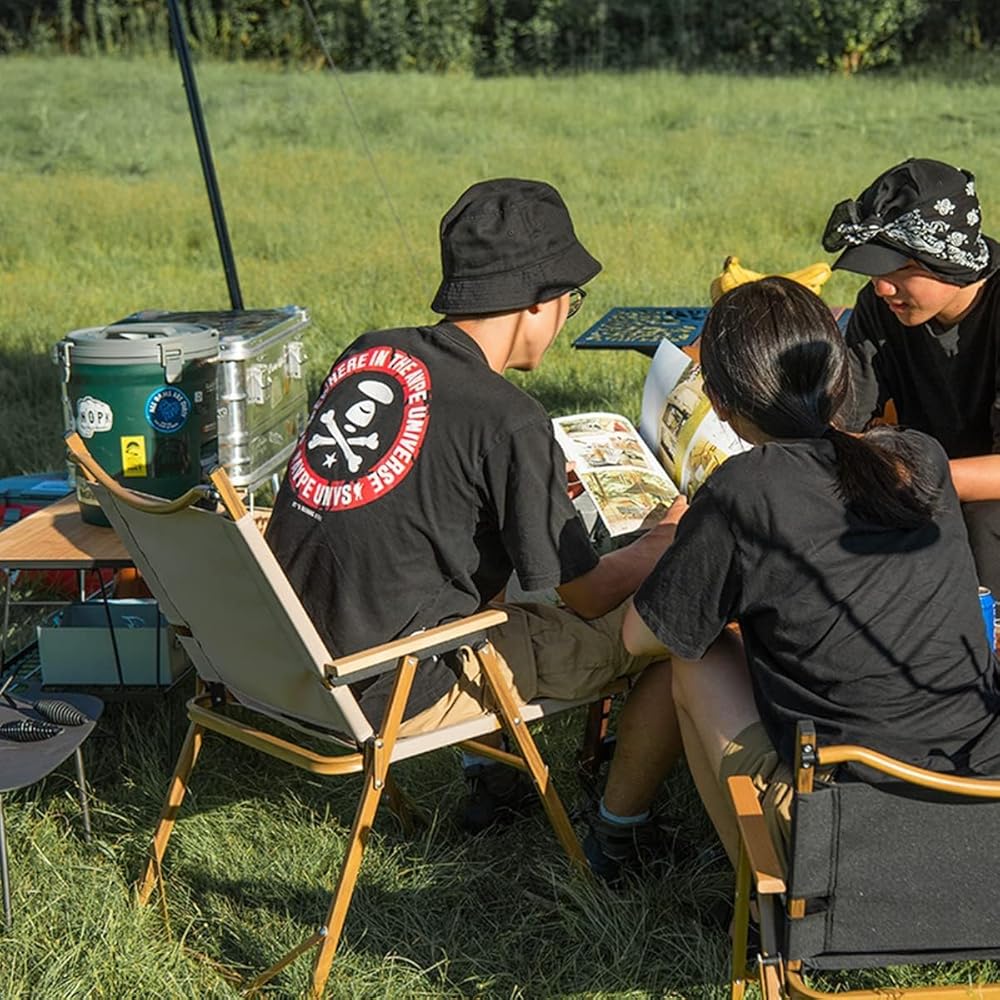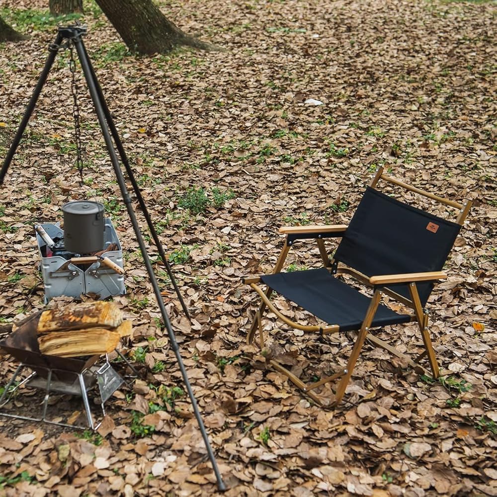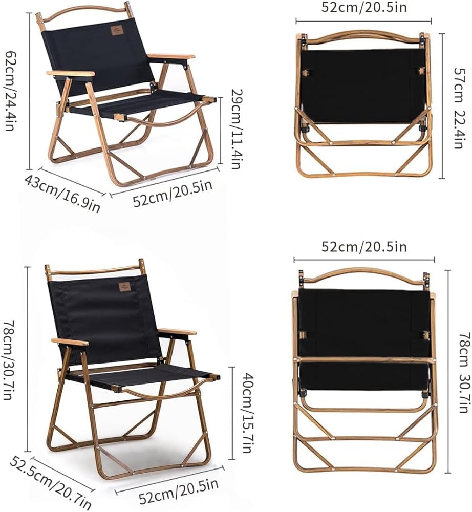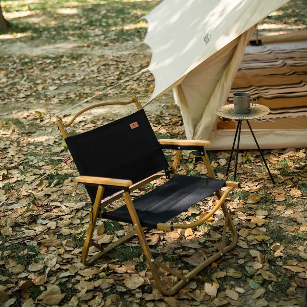 Naturehike Foldable Camping Beach Chair Portable, Folding Camping Beach Chair, Aluminum Outdoor Kermit Chair with Solid Wood Armrest, Portable Fishing Chair for Picnic, Supports 265 Lbs - Black