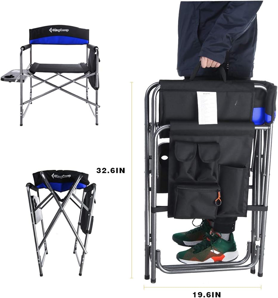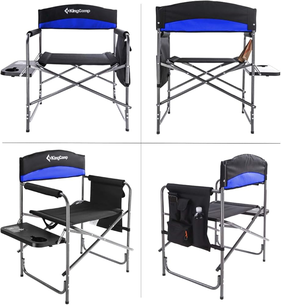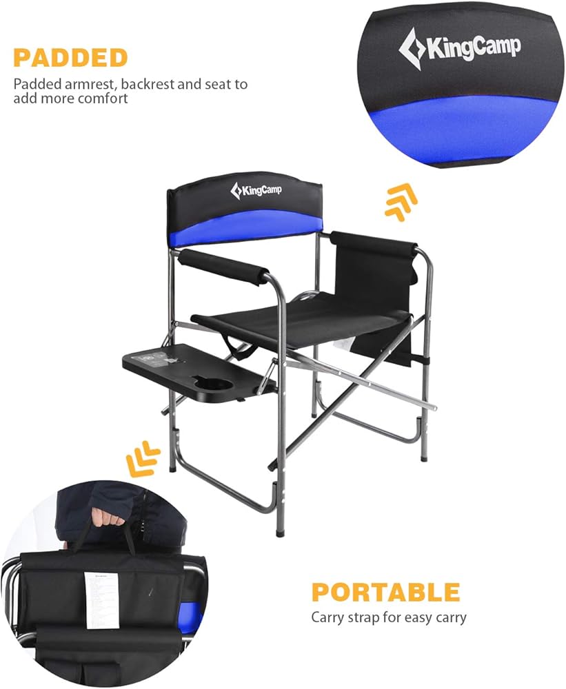 كرسي مدير التخييم KingCamp شديد التحمل للبالغين قابل للطي كبير الحجم في الهواء الطلق مع طاولة جانبية وجيوب مقعد مبطن، يدعم 400 رطل، حزمة واحدة، أسود/أزرق ملكي