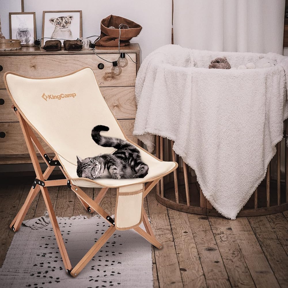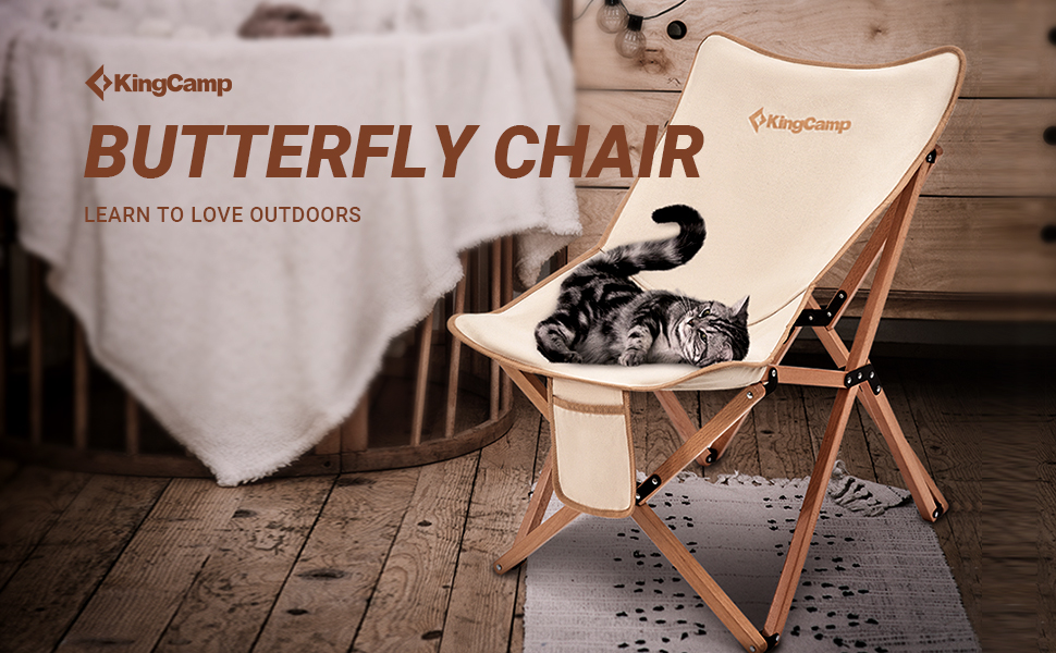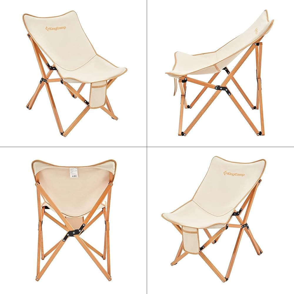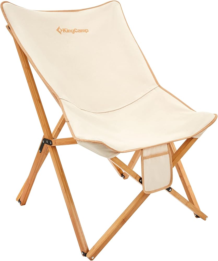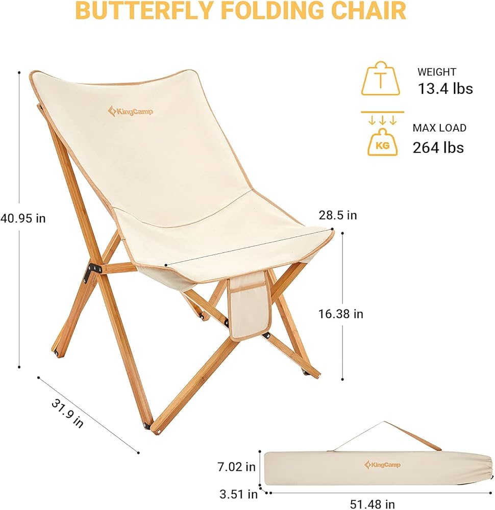 كرسي KingCamp مبطن كبير الحجم - كرسي فراشة مريح مقاس XL للاستخدام في الهواء الطلق مع حقيبة حمل، كرسي غرفة المعيشة للبالغين، كرسي قابل للطي في الحديقة يدعم 300 رطل، كرسي قراءة مقاس إضافي (بيج)