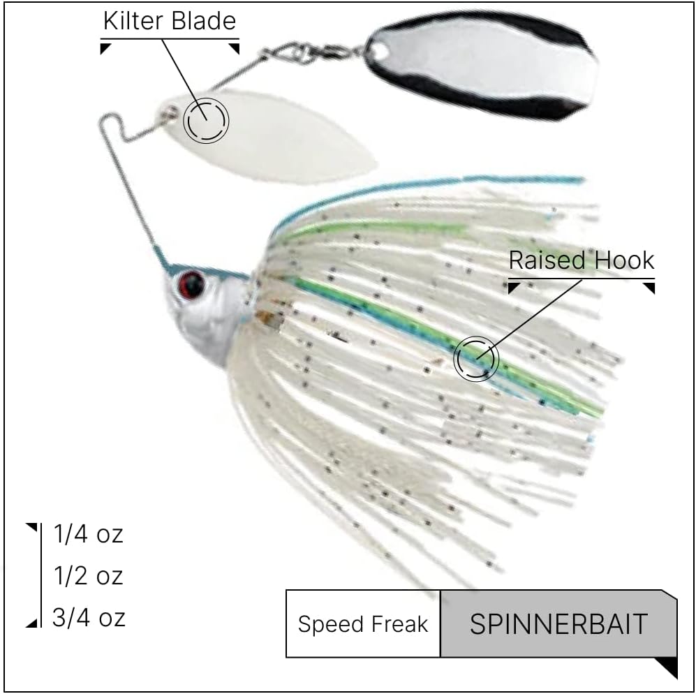 The Speed Freak also sports the patented Kilter Blade which will throw off a unique vibration fish have not felt before to generate more bites!