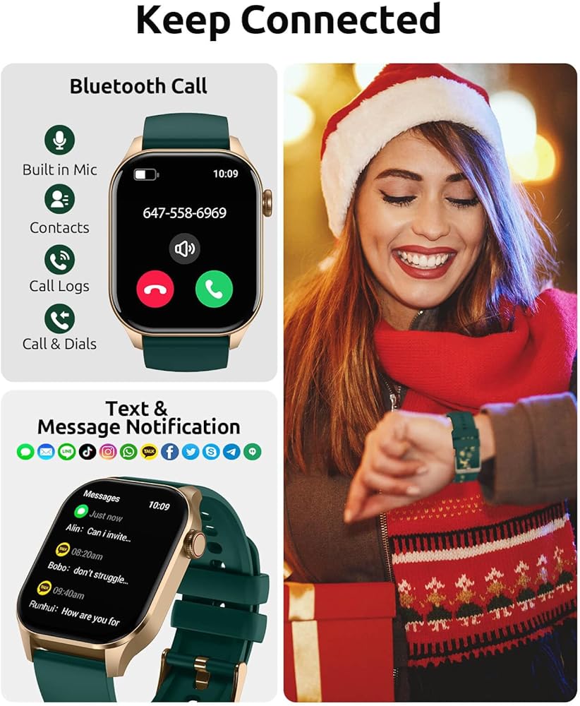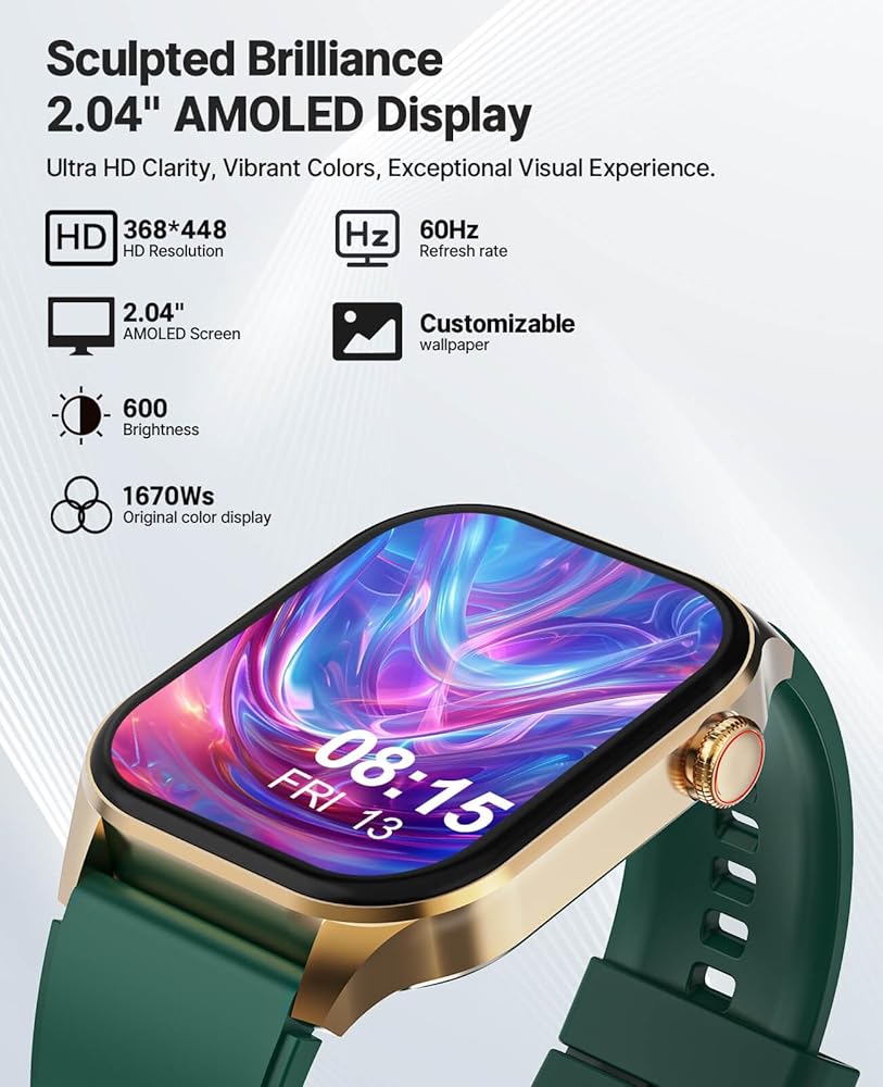 ساعة SOUYIE الذكية لعيد الميلاد للرجال والنساء، شاشة AMOLED 2.04 بوصة مع اتصال بلوتوث، 136 وضعًا رياضيًا، مراقبة معدل ضربات القلب أثناء النوم، مقاومة للماء IP68، متوافقة مع Android وiOS
