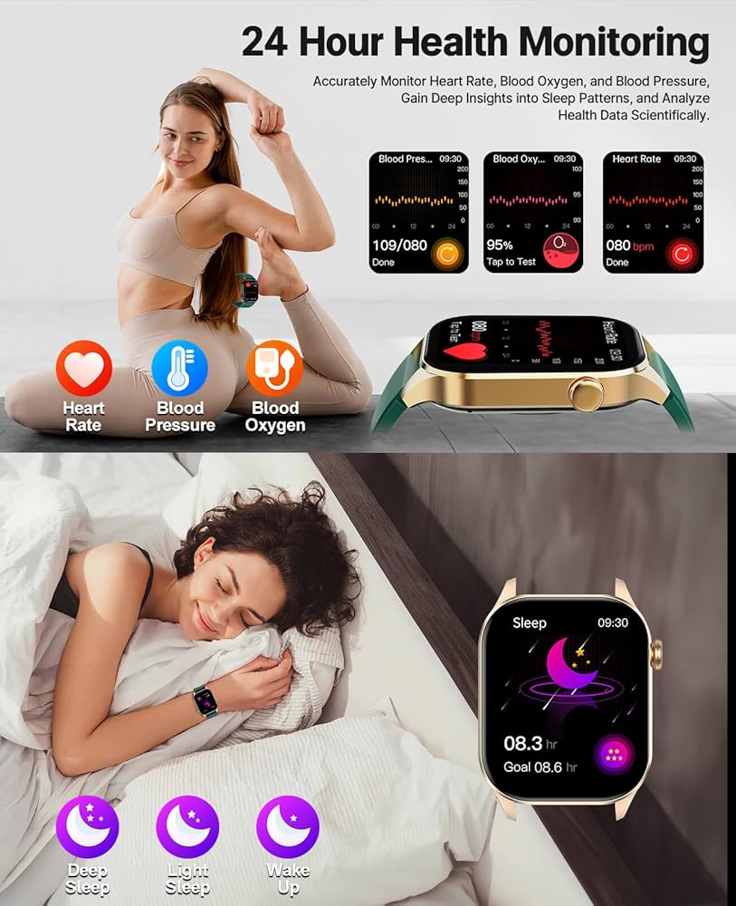 وظيفة مراقبة الصحة: يمكن للجهاز مراقبة مؤشرات صحية متعددة في الوقت الحقيقي على مدار الساعة، بما في ذلك معدل ضربات القلب وضغط الدم ودرجة حرارة الجسم وما إلى ذلك، وتسجيل مدة نومك وجودته لمساعدتك على فهم حالة تعافي جسمك بشكل أفضل. يحتوي على وظائف تذكير مستقرة وتذكير بشرب الماء للعناية دائمًا بصحتك اليومية