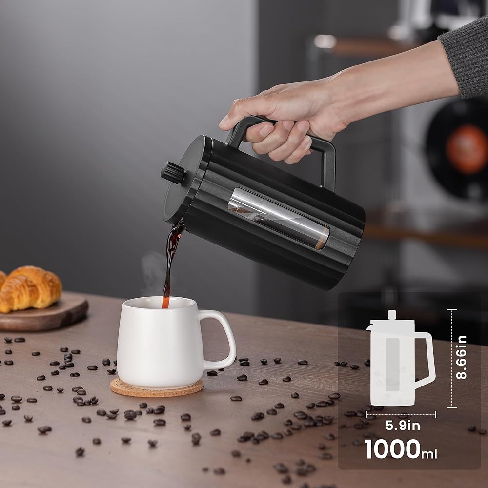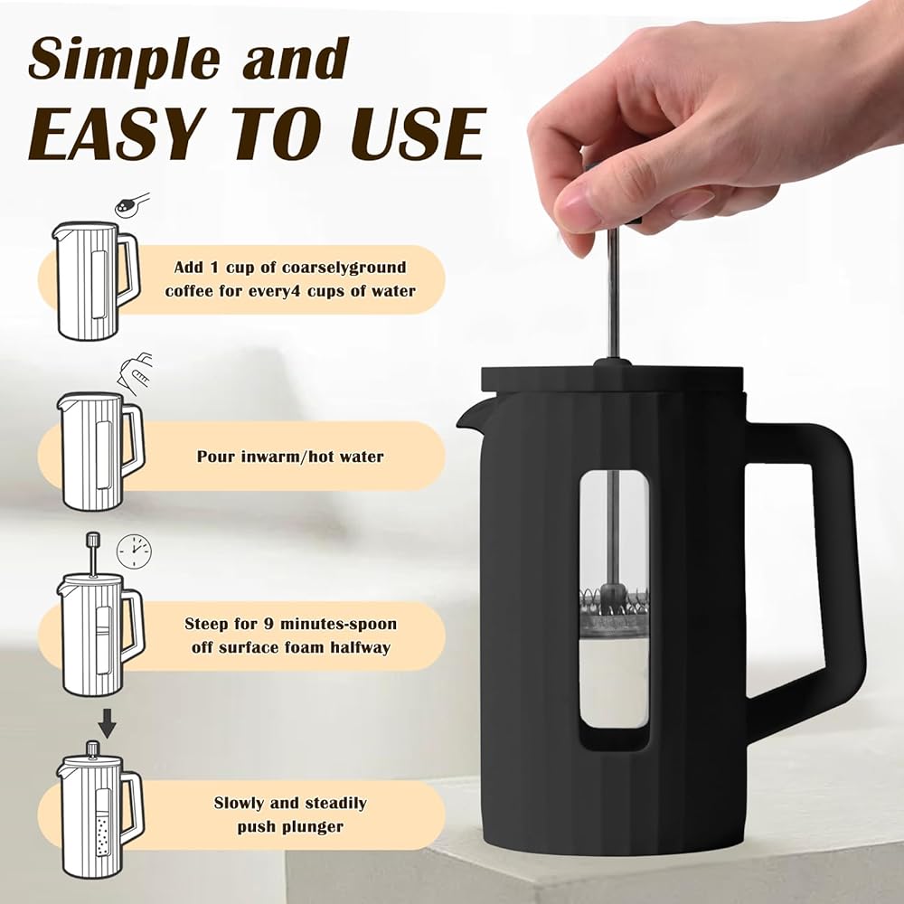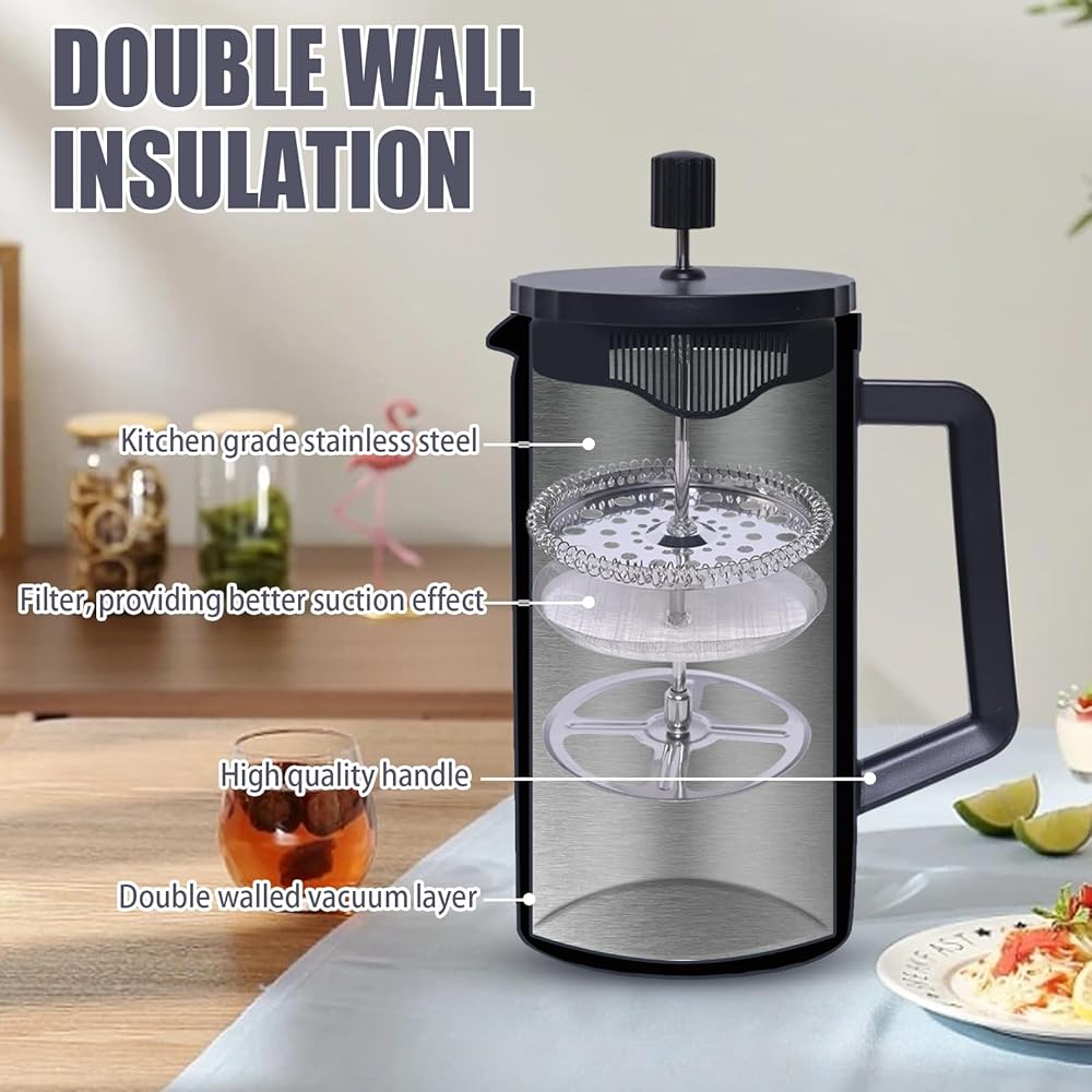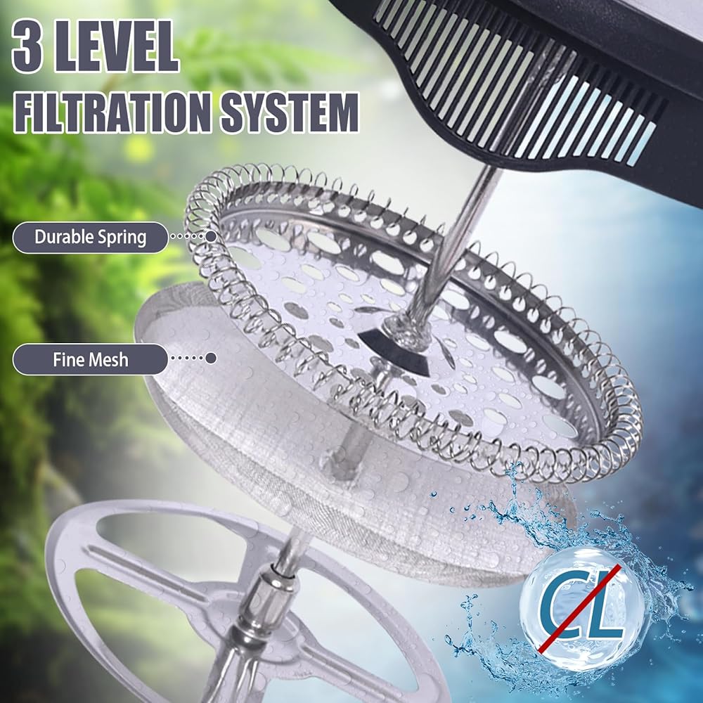 - فلتر من الفولاذ المقاوم للصدأ 304، حاوية زجاجية من البورسليكات، مظهر بلاستيكي من البولي إيثيلين