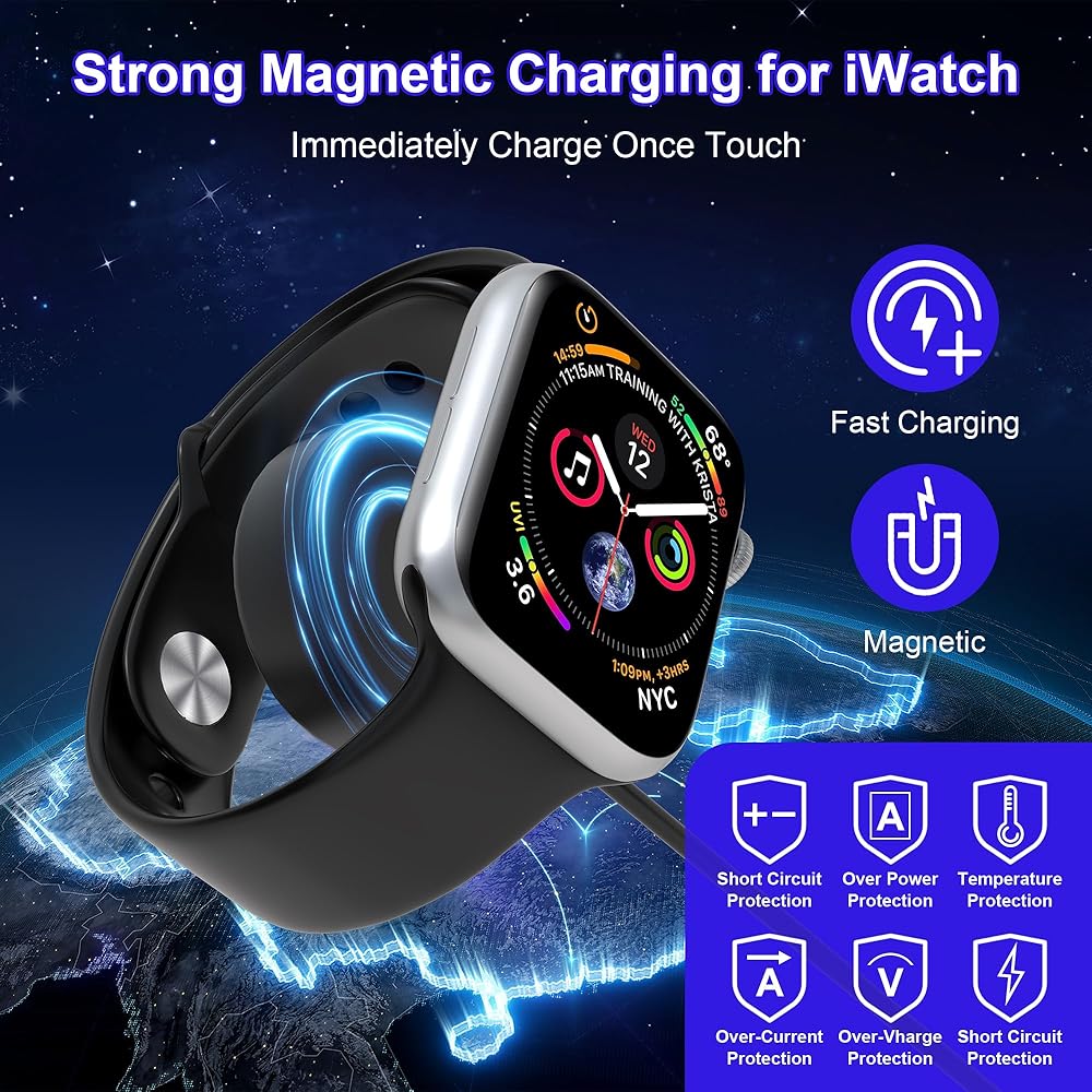 [توافق واسع]: منفذ شاحن iwatch متوافق مع جميع سلاسل ساعات Apple، بما في ذلك Apple Watch Series10، Apple Watch Ultra/Ultra 2، Apple Watch Series9/8/SE/7/6/5/4؛ منفذ Lightning متوافق مع iPhone14/13/12/11/11 Pro/11 Pro Max/XS؛ يدعم منفذ USB-C هواتف iPhone 16/16Pro وسلسلة iPhone15 وiPad وMacbook وأجهزة الكمبيوتر المحمولة وGalaxy والهواتف الذكية الأخرى المزودة بمنفذ USB-C؛ منفذ Micro USB متوافق مع Samsung Galaxy S7/S6/S4 ومعظم هواتف Android بالإضافة إلى Kindle وسماعات البلوتوث وأجهزة التحكم PS4 والمزيد.
