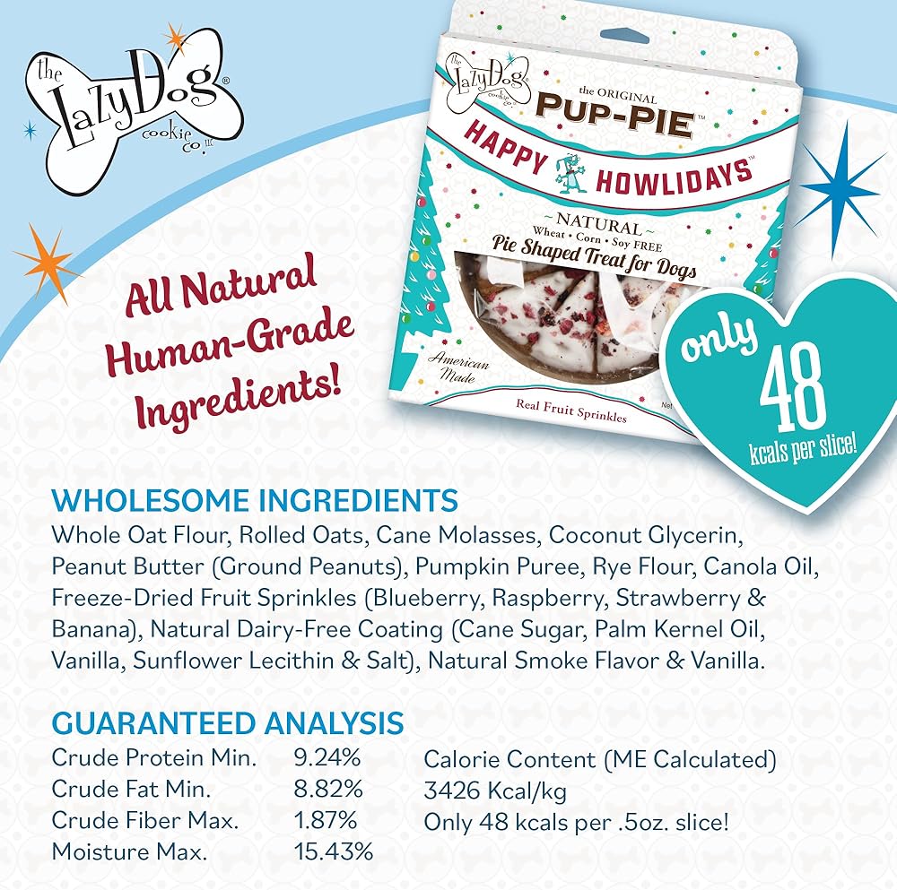 Human Grade Ingredients – Our wholesome and yummy treats are overflowing with puppy love. Lazy Dog's pies are corn free, soy free, wheat free and dairy free. A thoughtful stocking stuffer for puppies or older dogs. Pre-sliced into 10 dog biscuits.