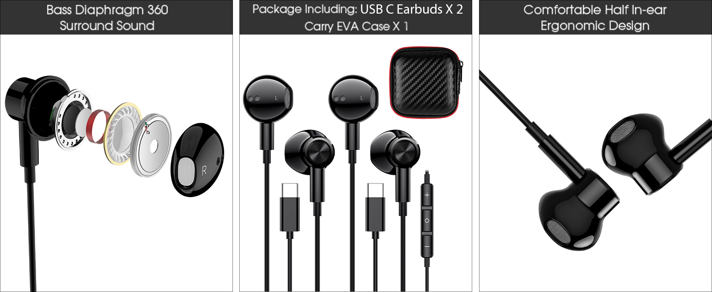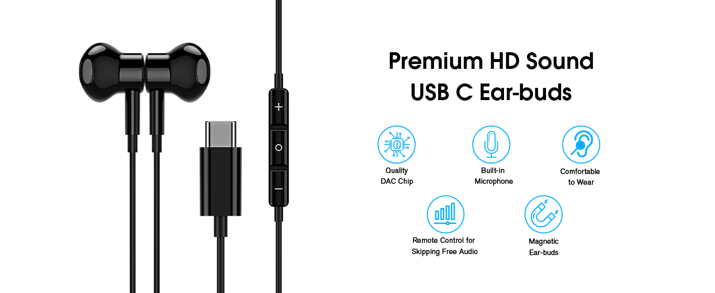 • سماعات أذن سلكية من النوع C بصوت ستيريو: شريحة DAC قوية مدمجة للحفاظ على الصوتيات عالية الدقة لأجهزتك، بدون طنين أو فرقعة أو أي مشاكل صوتية سيئة أخرى