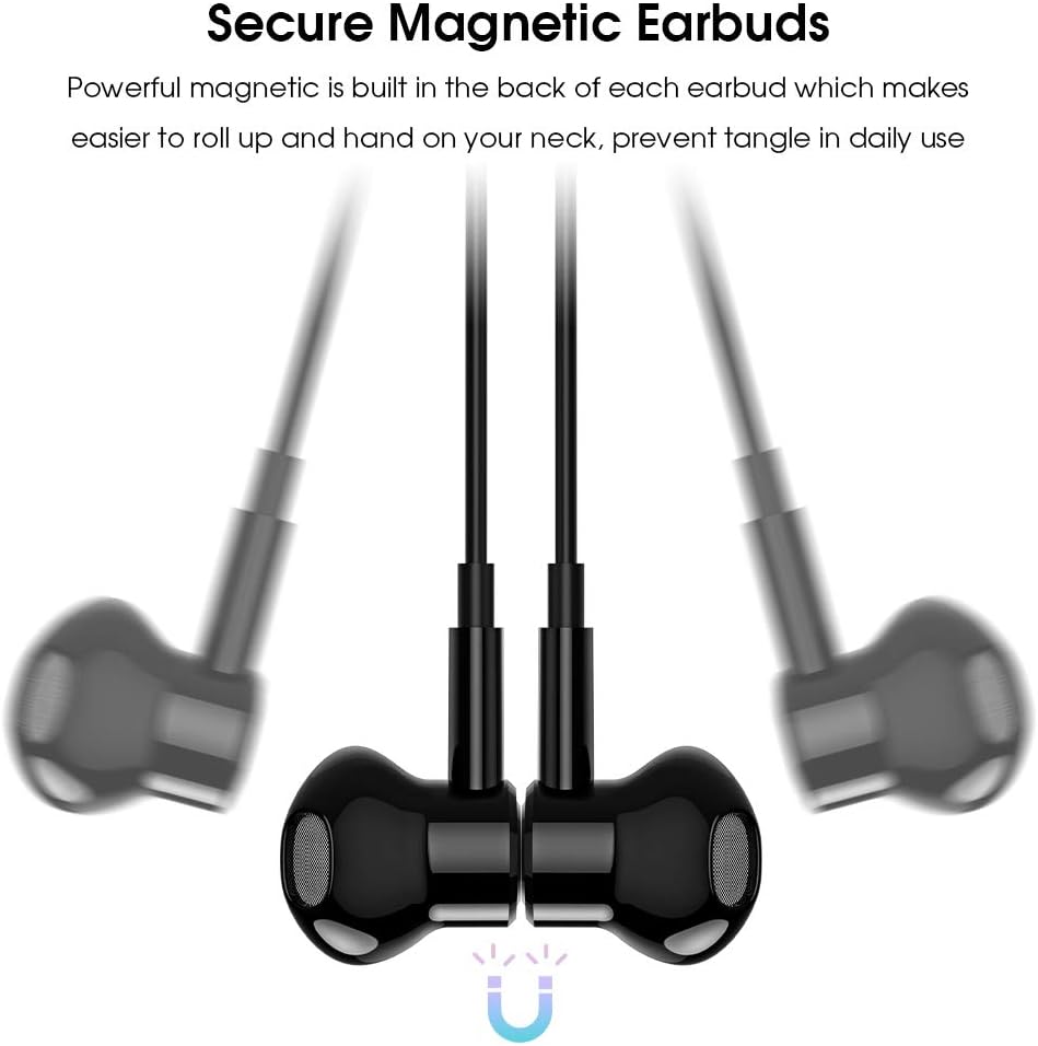 • سماعات أذن USB C مغناطيسية: مغناطيس قوي في الجزء الخلفي من كل سماعة أذن مما يجعل من السهل لفها ودون أي تشابك في الاستخدام اليومي؛ يمكن أن يمنع التصميم المغناطيسي أيضًا سماعات الرأس من النوع C من الانزلاق عند عدم الاستخدام، فقط قم بتعليقها حول رقبتك