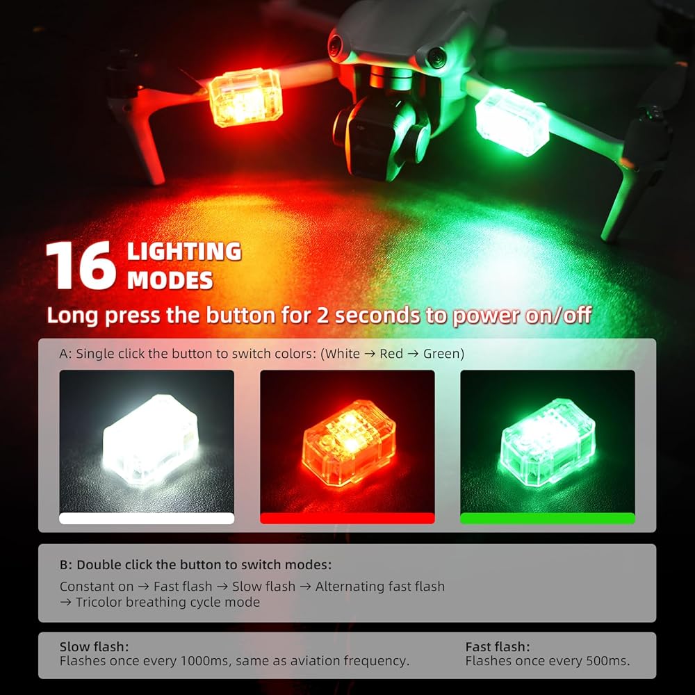 عمر بطارية طويل وشحن سريع: مجهزة ببطارية ليثيوم عالية السعة 300 مللي أمبير في الساعة، يدوم ضوء القوية لمدة تصل إلى 7.5 ساعة عند الشحن الكامل، مما يقلل الحاجة إلى إعادة الشحن المتكرر. كما أنه يدعم الشحن السريع، حيث يتم الشحن بالكامل خلال 1.5 ساعة فقط، لذلك تكون دائمًا جاهزًا لمغامرات الطيران الخاصة بك.
