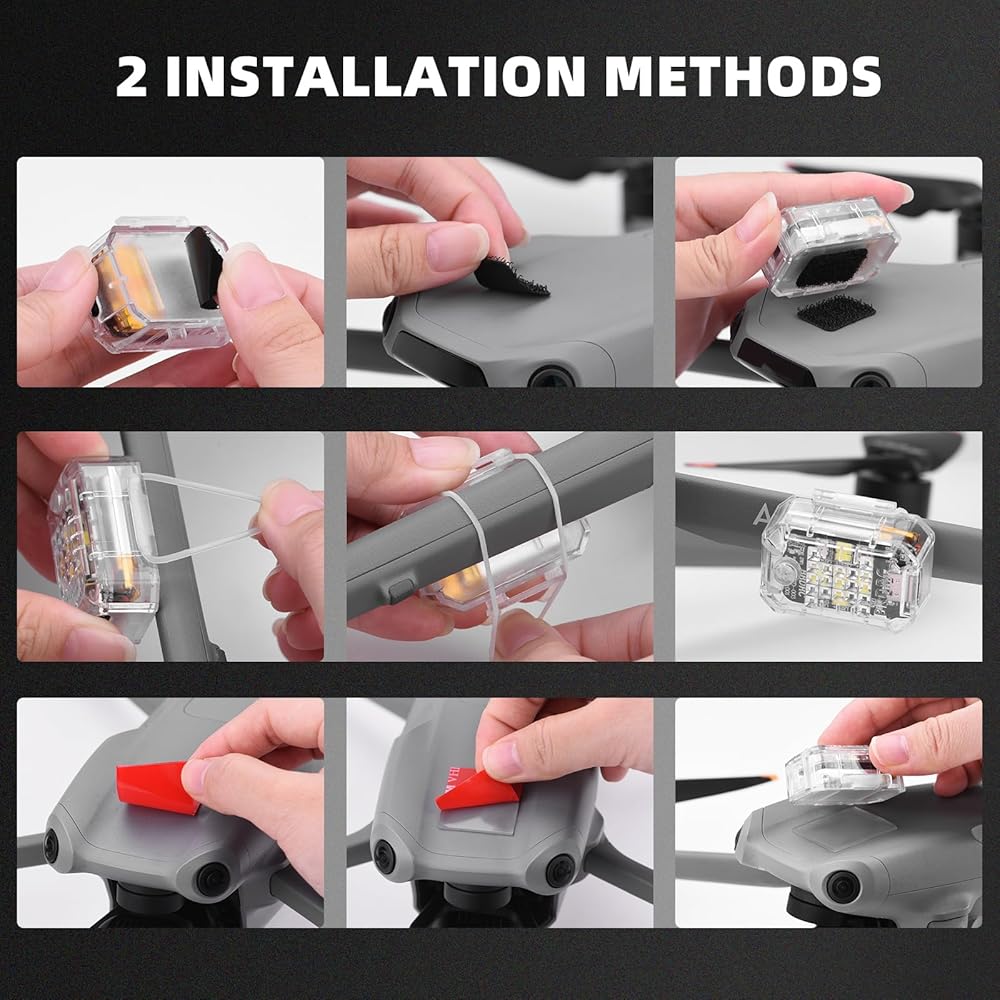 خفيف الوزن وسهل التركيب مع توافق قوي: مع شريط لاصق قوي على الوجهين وحلقات سيليكون قابلة للتعديل، يمكن ربط الضوء بسهولة بأي شيء مناسب، مثل الطائرات بدون طيار ومركبات RC والدراجات والدراجات النارية والخوذ.