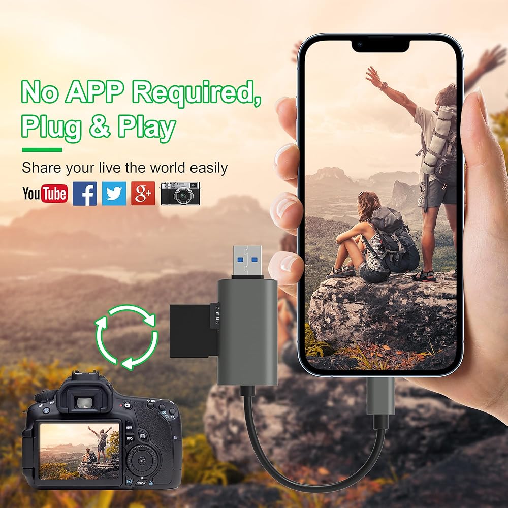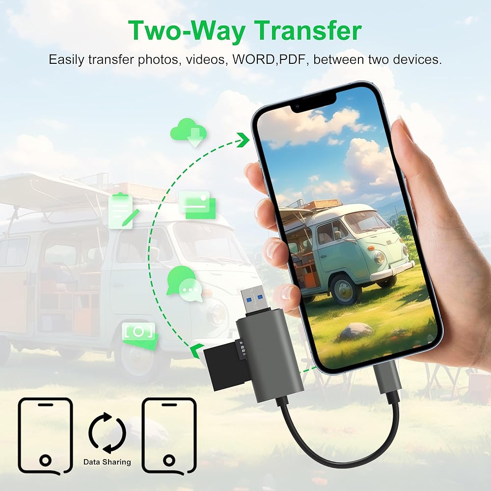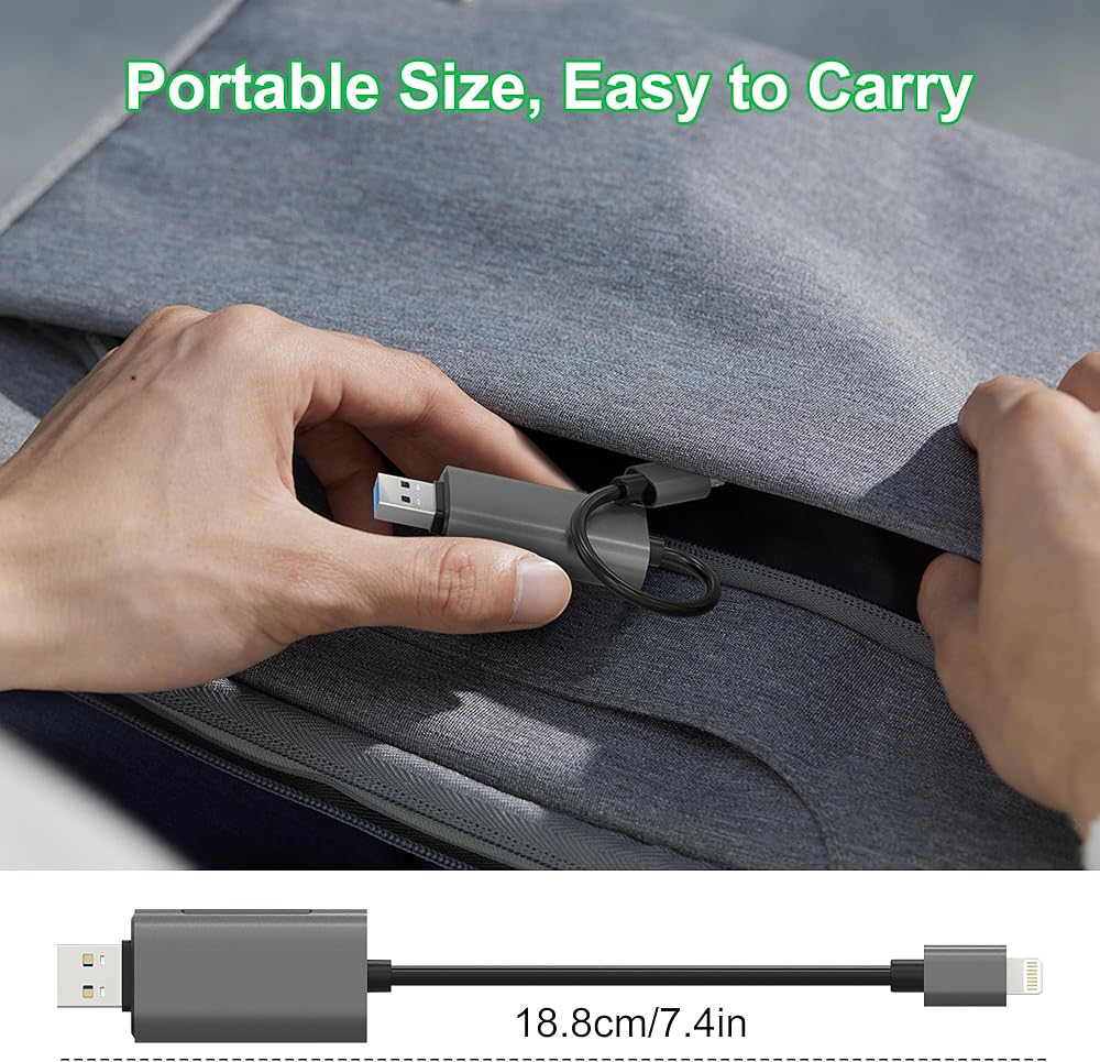 التوصيل والتشغيل: قم بتوصيل قارئ بطاقة iPhone SD الخاص بك بالجهاز، لا يتطلب تطبيقات طرف ثالث أو اتصال بالشبكة، انتظر 1-3 ثوانٍ، واستمتع بنقل الصور في الوقت الحقيقي من iPhone والكمبيوتر، وشارك سعادتك مع العائلة والأصدقاء