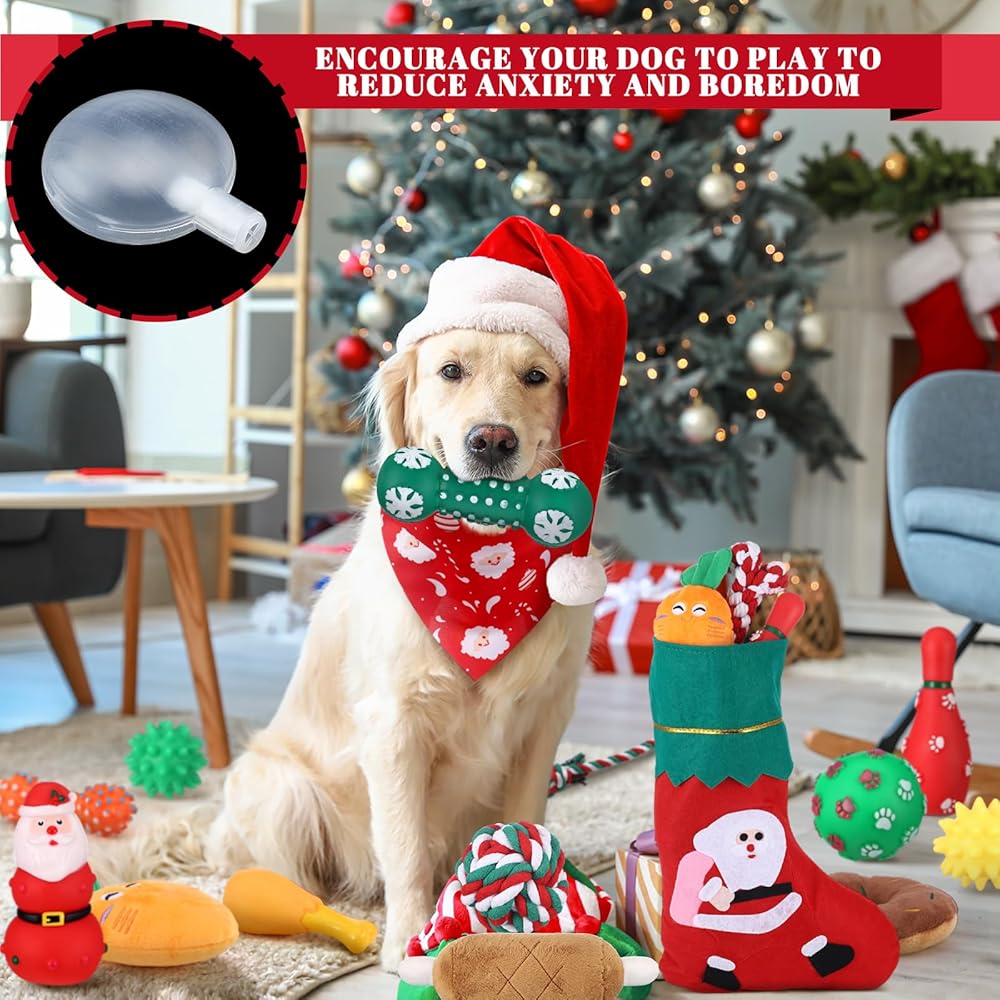 Adorned with classic Christmas figures such as Santa Claus, Christmas trees, bones and chickens, these toys can instantly enhance the Christmas ambiance. Plus, they make ideal dog Christmas gifts.