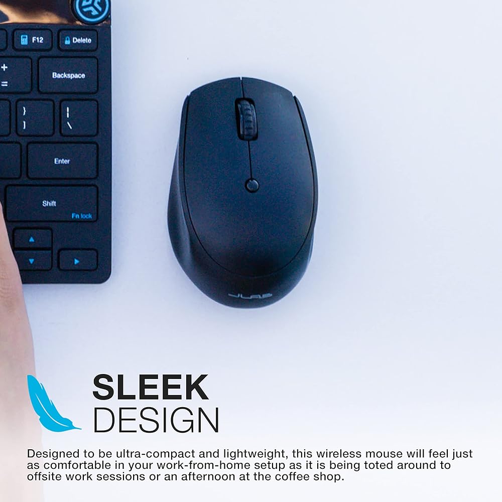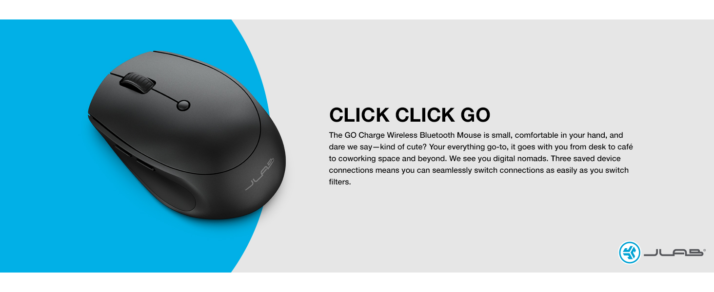 ماوس JLab GO للشحن اللاسلكي، الاتصال عبر بلوتوث أو دونجل USB لاسلكي، تبديل الأجهزة المتعددة، محمول، صغير للغاية وخفيف الوزن للعمل أثناء التنقل، تتبع قابل للتعديل، (عبوة واحدة)