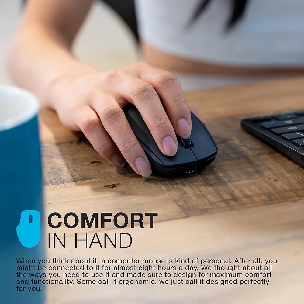 تصميم أنيق: تم تصميم هذا الماوس اللاسلكي ليكون صغير الحجم وخفيف الوزن للغاية، وسيشعر بالراحة تمامًا في إعداد العمل من المنزل حيث يتم حمله إلى جلسات العمل خارج الموقع أو بعد الظهر في المقهى.