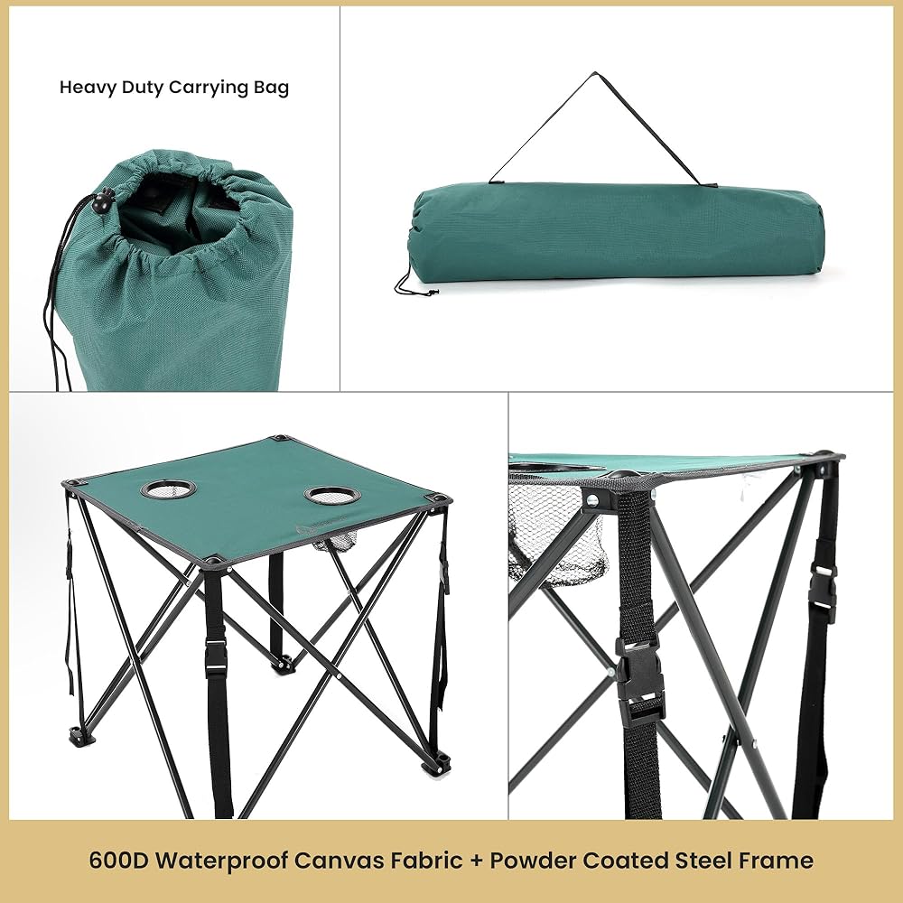[هيكل صلب عالي التحمل] - هيكل إطار فولاذي عالي التحمل مع قماش متين 600D. يبلغ مقاسها 18.5 بوصة طولًا × 18.5 بوصة عرضًا × 18.5 بوصة ارتفاعًا عند الإعداد (يمتد سطح الطاولة 24 بوصة قطريًا).