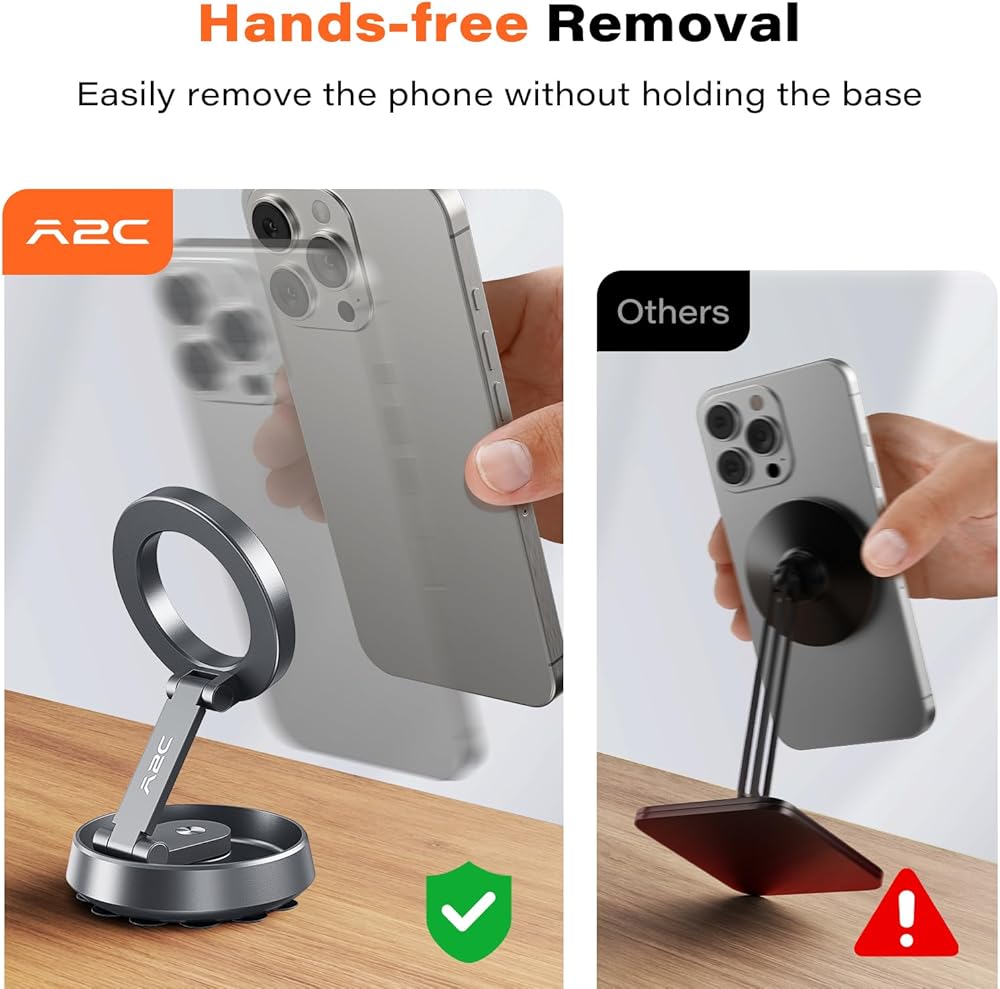 A2C لحامل الهاتف Magsafe، حامل هاتف من الألومنيوم للمكتب مع قاعدة لاصقة وذراع قابل للتدوير، مكتب حامل هاتف محمول مغناطيسي للمبدعين، صور السيلفي، متوافق مع iPhone 12-16 وحافظة Magsafe
