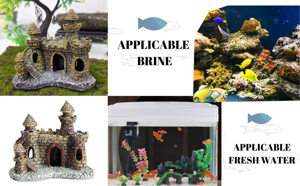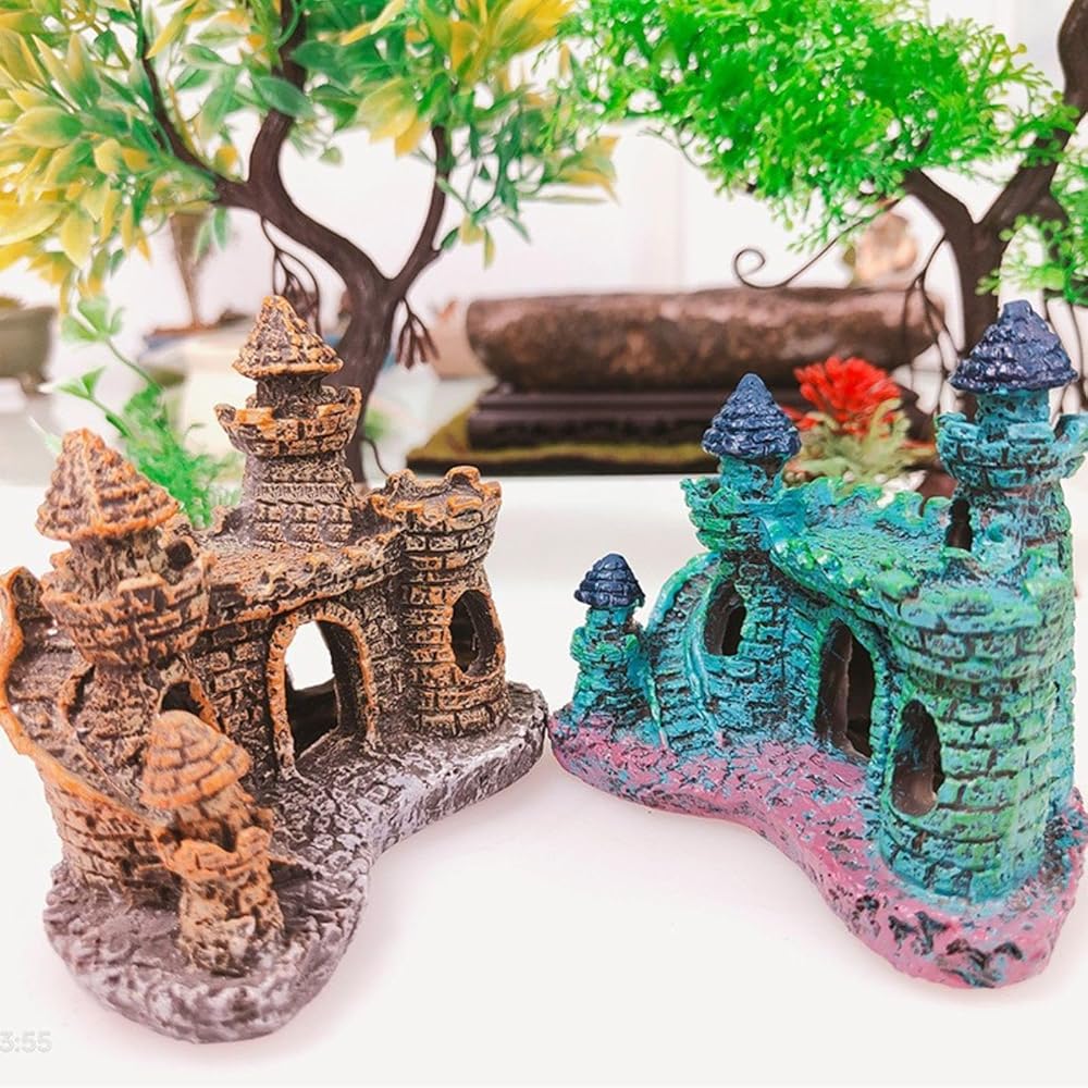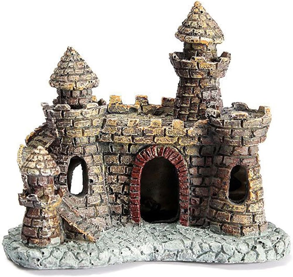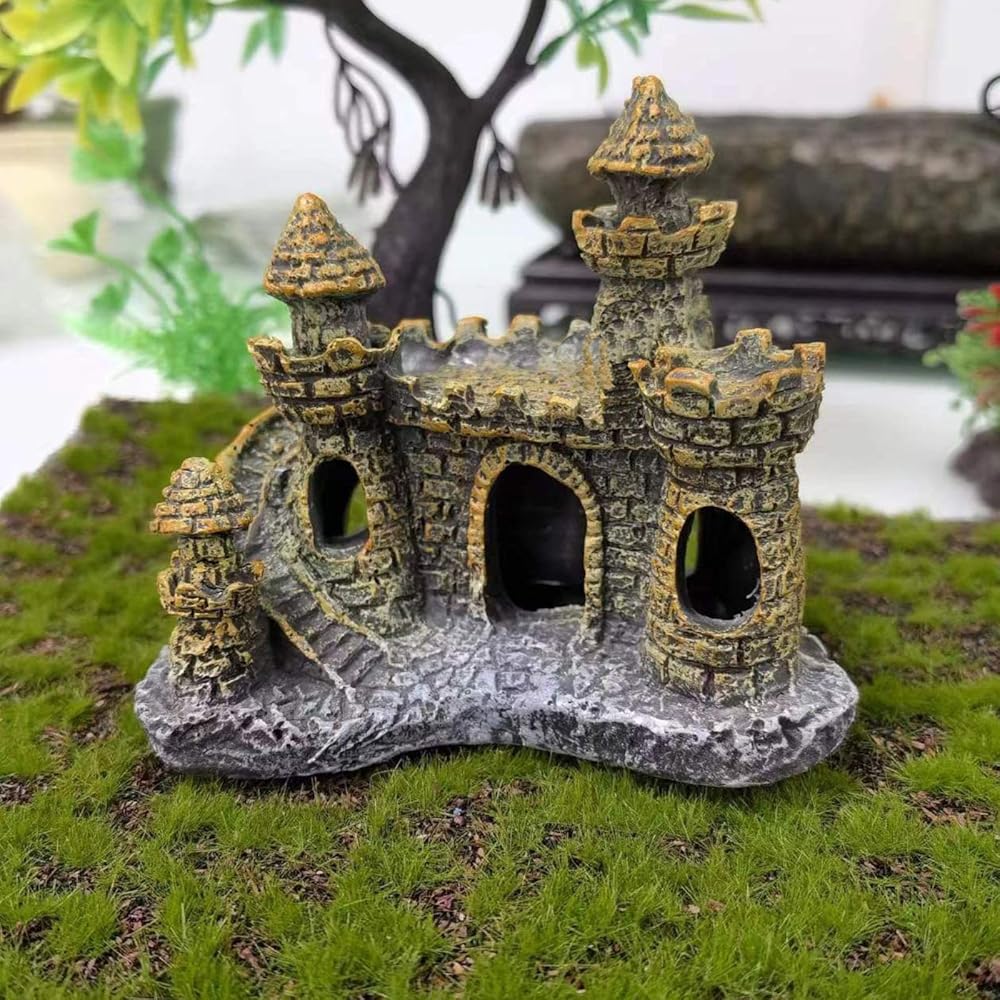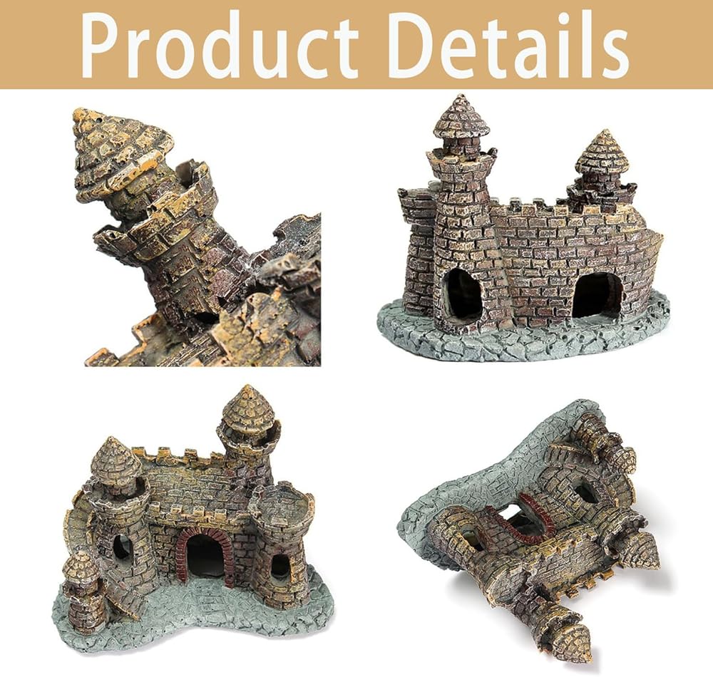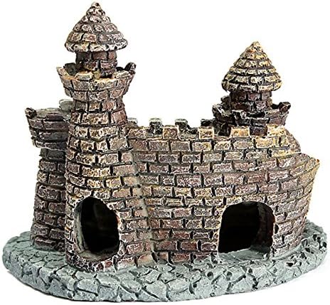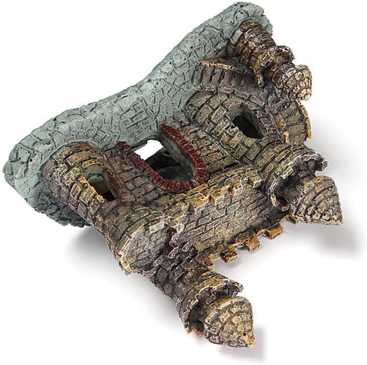 ديكورات خزان الأسماك، ديكورات حوض السمك على شكل قلعة من الراتنج، مخابئ كهف الأسماك على شكل قلعة عتيقة، ديكورات كبيرة لخزان الأسماك للخزان، زينة إكسسوارات حوض أسماك بيتا