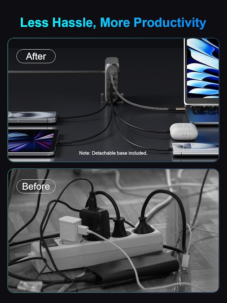 • 【ما تحصل عليه】شاحن UCANUP 188W GaN (5 منافذ)، وكابل شحن مجدول من النايلون بطول 6.6FT C-C 240W، وقاعدة قابلة للفصل، وضماننا الخالي من المتاعب مدى الحياة وخدمة عملاء ودودة.