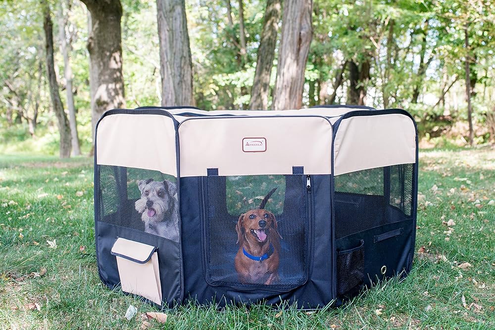 With a net weight of 7 lbs., the durable pet pen can be used indoors or outdoors.
