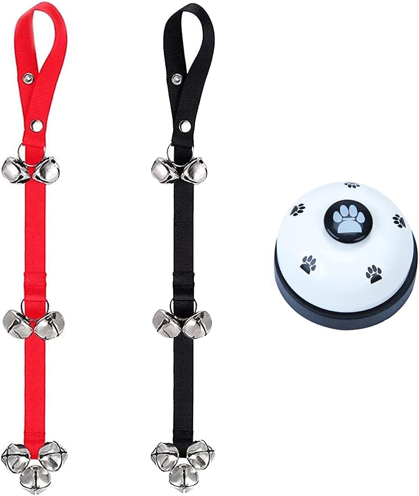 أجراس باب للكلاب من WOHENI للتدريب على استخدام الحمام، وأجراس للكلاب قابلة للتعديل لمقبض الباب، وتدريب الجراء، وكسر المنزل، والخروج من المرحاض، وأجراس عالية الصوت للغاية (أسود + أحمر)