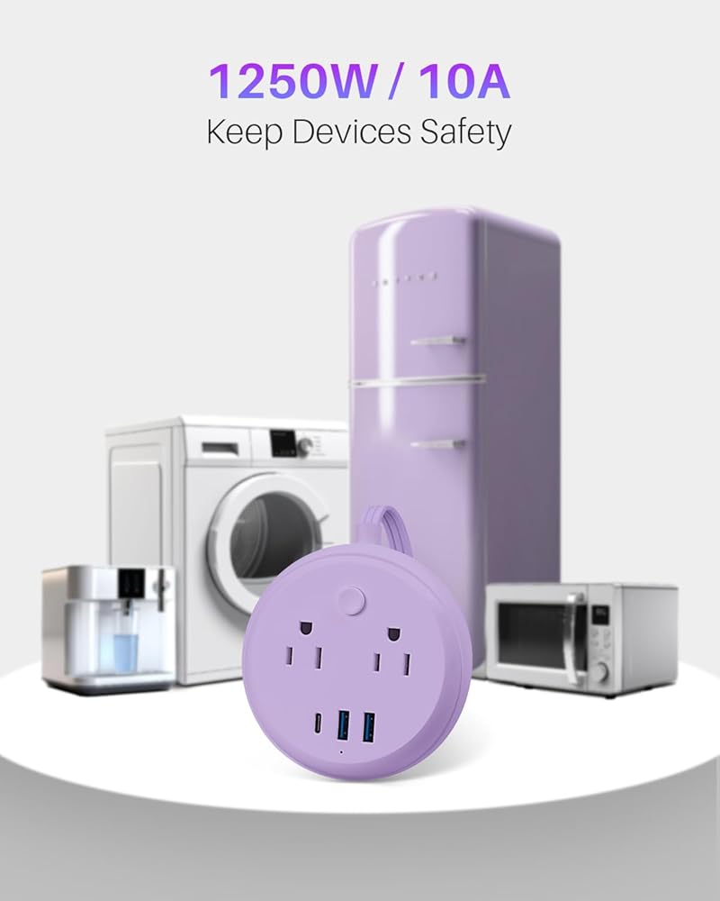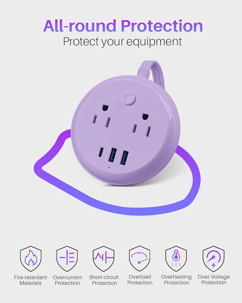 تشغيل ما يصل إلى 5 أجهزة - مع 2 منافذ تيار متردد، ومنفذ USB-C، ومنفذي USB-A، يمكنك تشغيل وشحن ما يصل إلى 5 أجهزة، والحفاظ على سطح المكتب الخاص بك منظمًا. سلك تمديد رفيع بطول 5 أقدام (1250 وات/10 أمبير)، قوي ومتين. تصميم القابس لسهولة الفك والتوصيل.