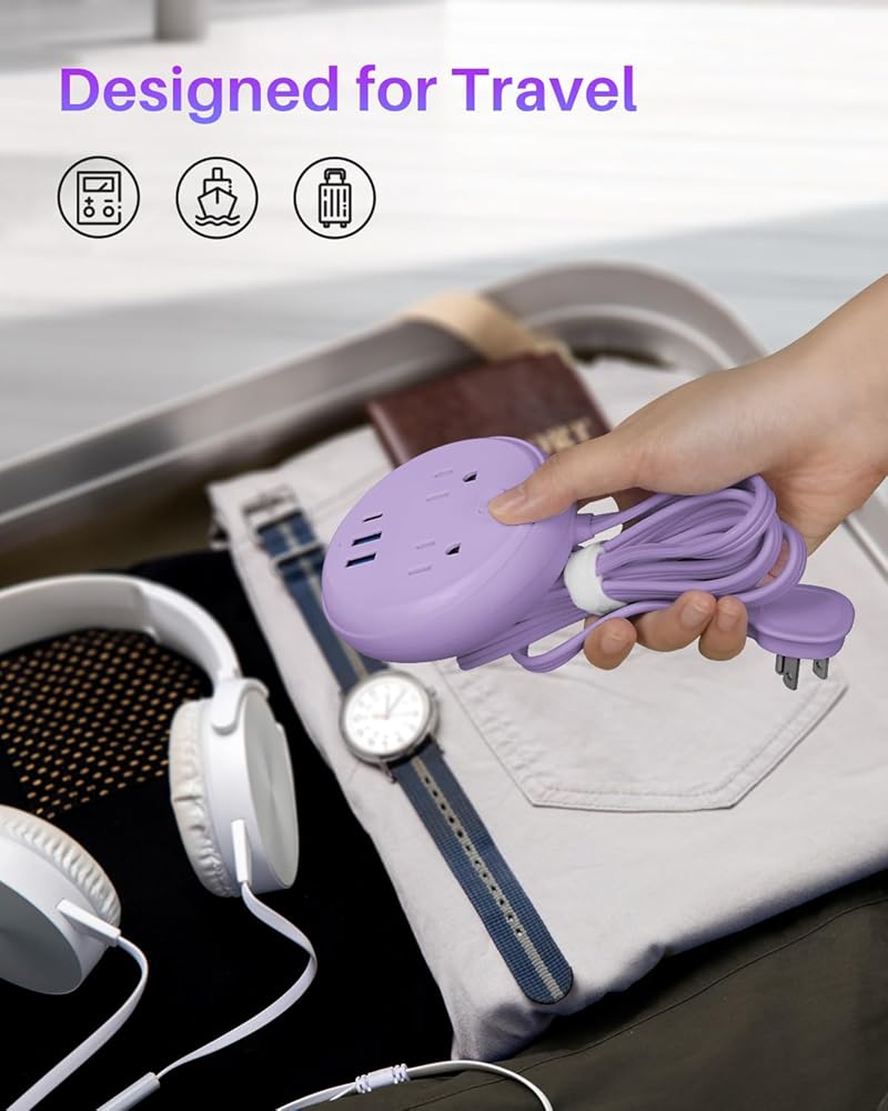ملحقات الرحلات البحرية التي لا غنى عنها - شريط طاقة للسفر بدون حماية من زيادة التيار، ملحقات أساسية للغاية للمنزل والسفن السياحية. حجم صغير (3.9 بوصة × 3.9 بوصة × 1.2 بوصة)، خفيف الوزن وقابل للحمل، مناسب للسفر.