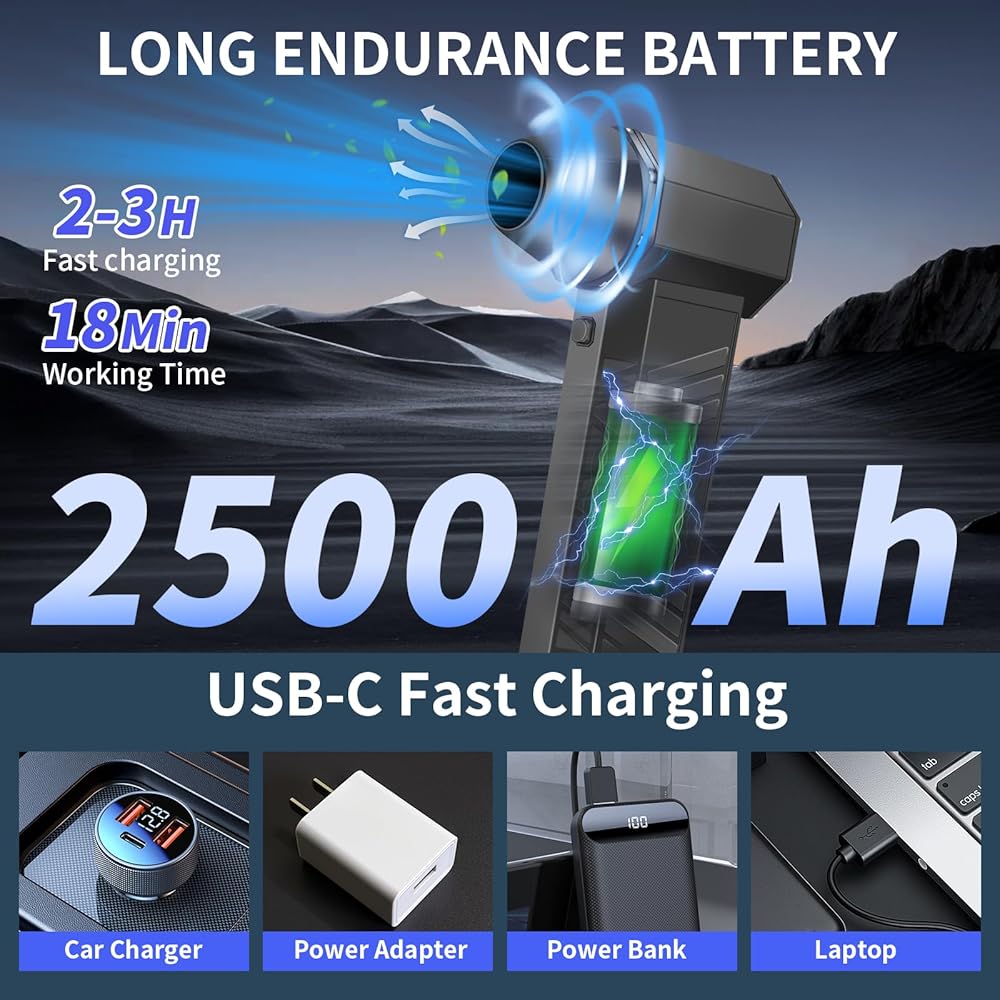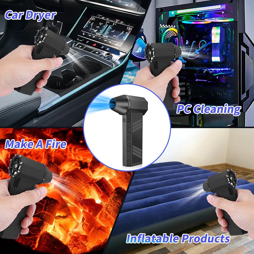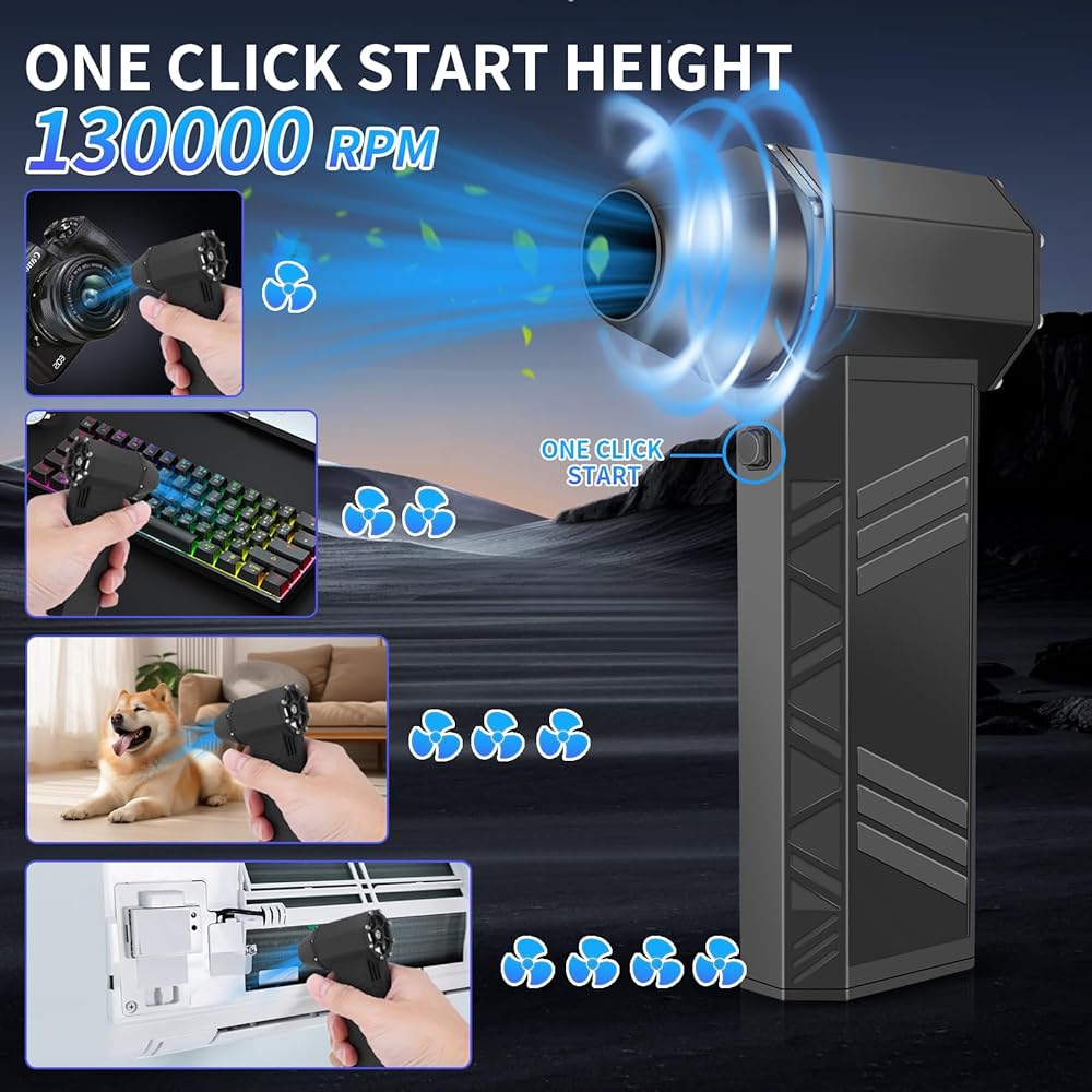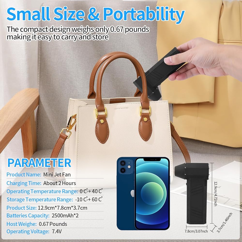 المروحة النفاثة المحمولة باليد مناسبة لإزالة الغبار والأتربة داخل السيارة، ونفخ الماء على زجاج السيارة، وإزالة الثلج على غطاء السيارة، وتجفيف شعر الحيوان الأليف بعد الاستحمام. أريكة، لوحة مفاتيح، صندوق كمبيوتر، غبار ورشة عمل خشبية، مجفف شعر خارجي