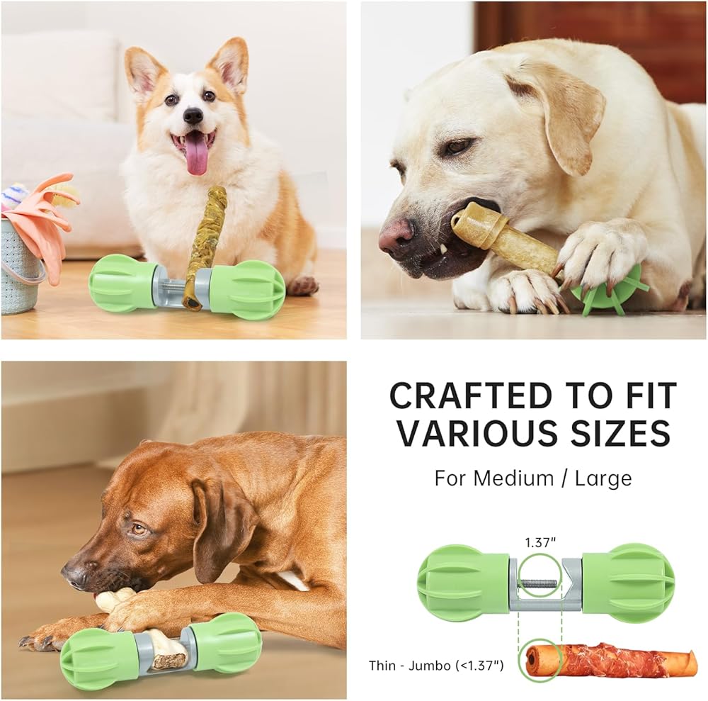 【أمان معزز】: تم تصميم الحامل الخاص بنا ليمسك الجزء الأخير من عصي أو عظام الفتوة بشكل آمن، مما يمنع كلبك من ابتلاعه ويقلل من خطر مخاطر الاختناق.