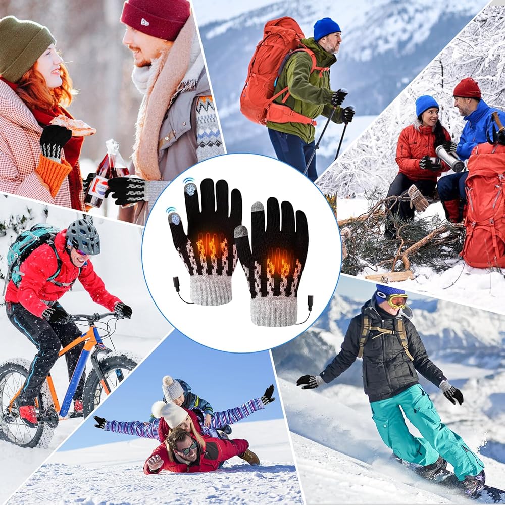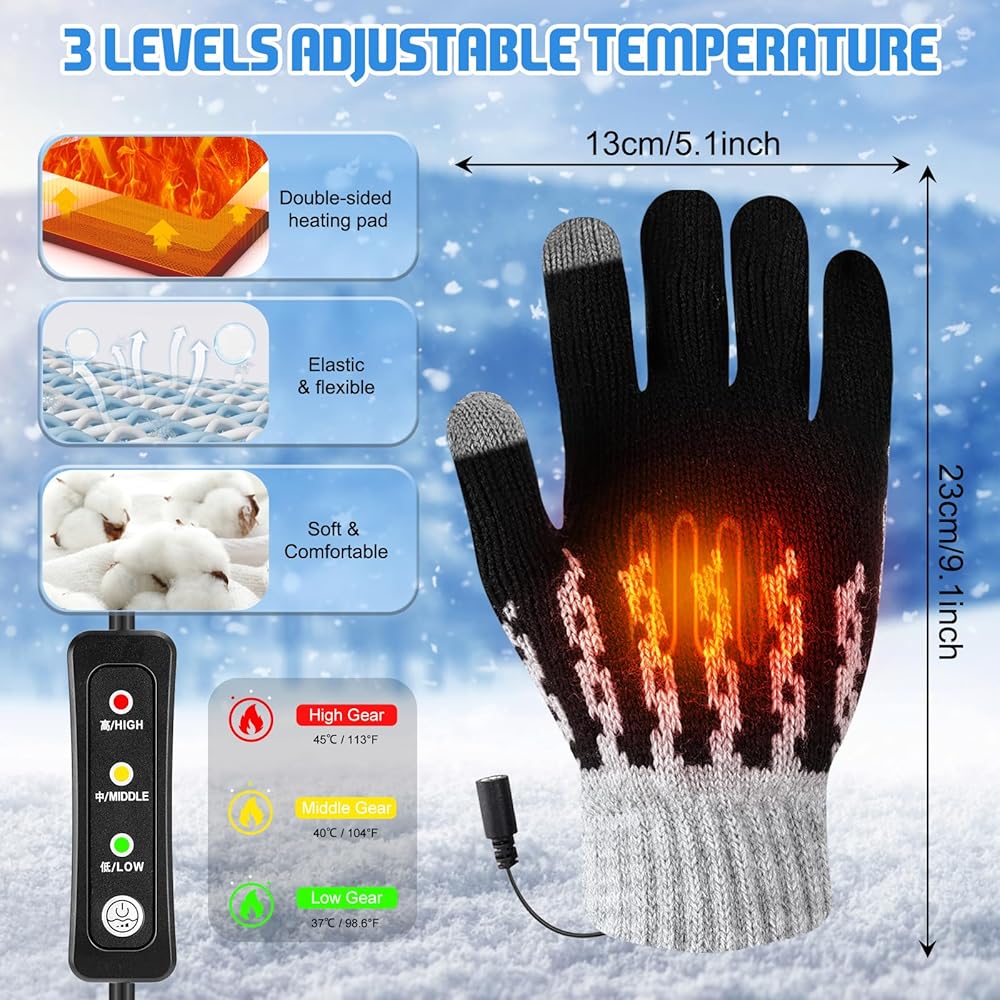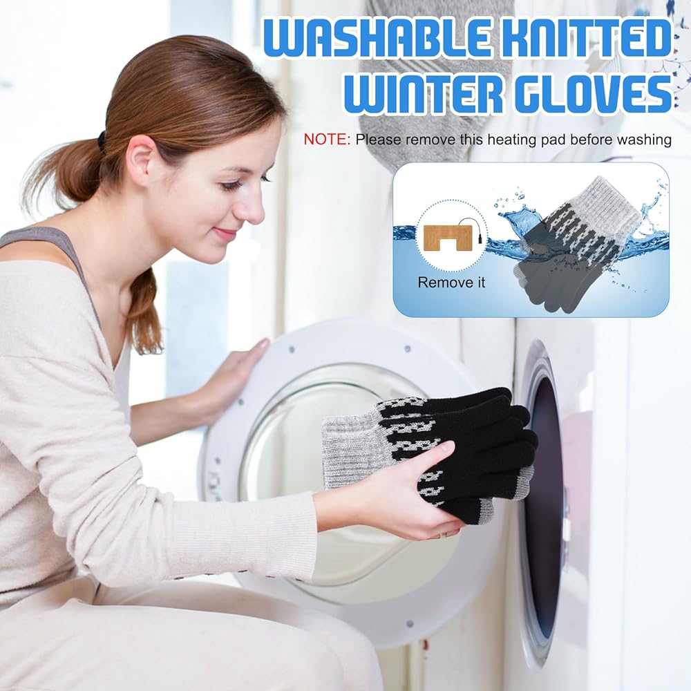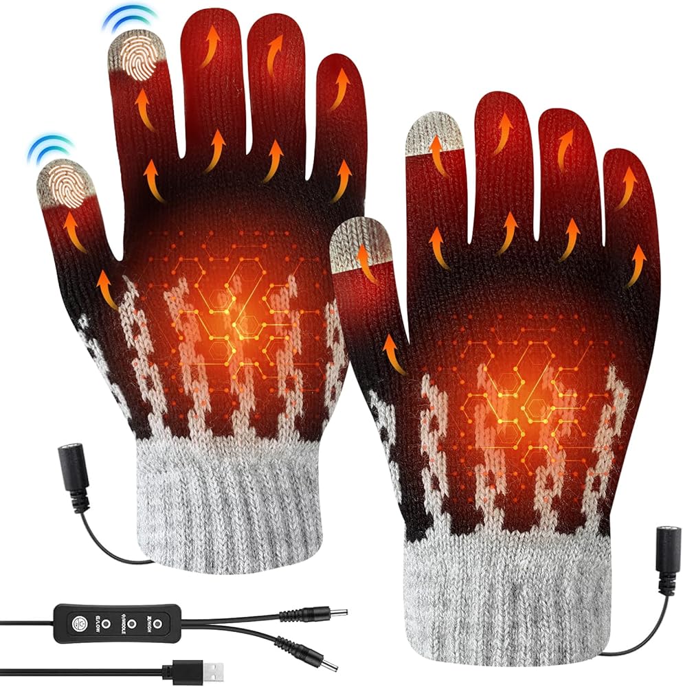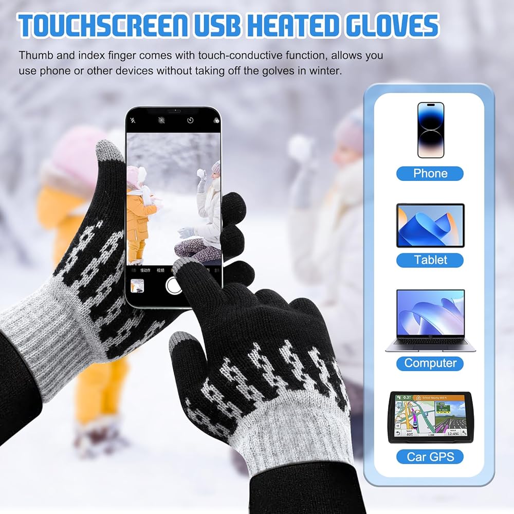 قفازات USB ساخنة للرجال والنساء، قفازات تدفئة حياكة مع قفازات تدفئة يدوية من الصوف المحبوك على الوجهين مع أصابع تعمل باللمس و3 قفازات كمبيوتر محمول قابلة للغسل بدرجة حرارة قابلة للتعديل