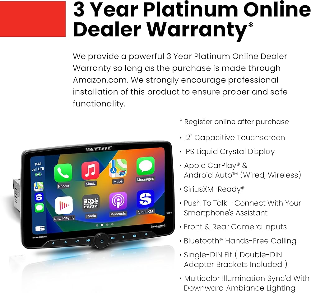 WARRANTY: BOSS Audio Systems provides a powerful 3-year platinum online dealer warranty. We strongly encourage professional installation of this product to ensure proper and safe functionality