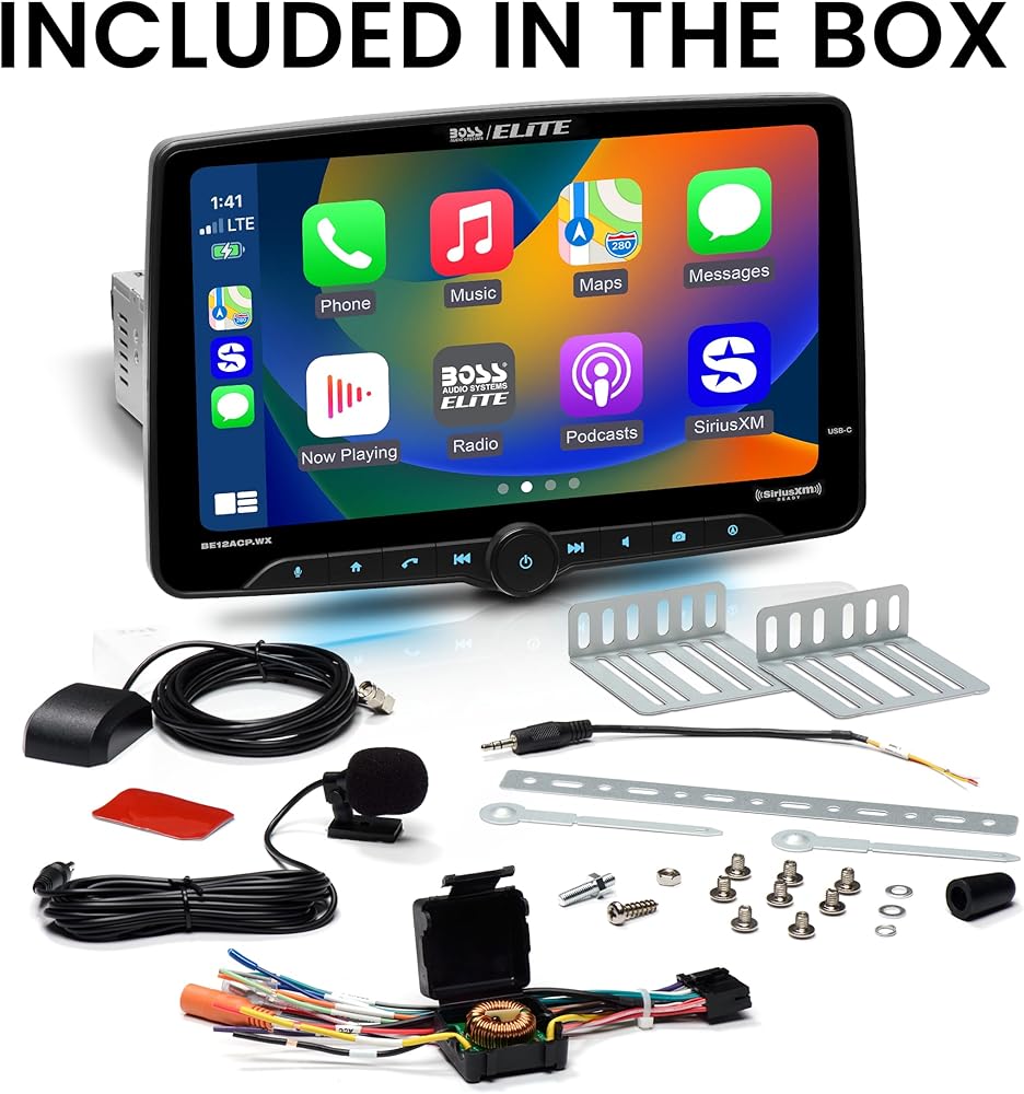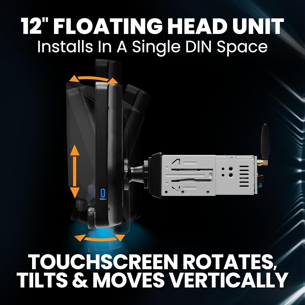 Car Stereo - Apple CarPlay, Android Auto, Sirius XM-Ready, Single Din, 12" Touchscreen, Bluetooth, No DVD, AM/FM, Multicolor Panel
