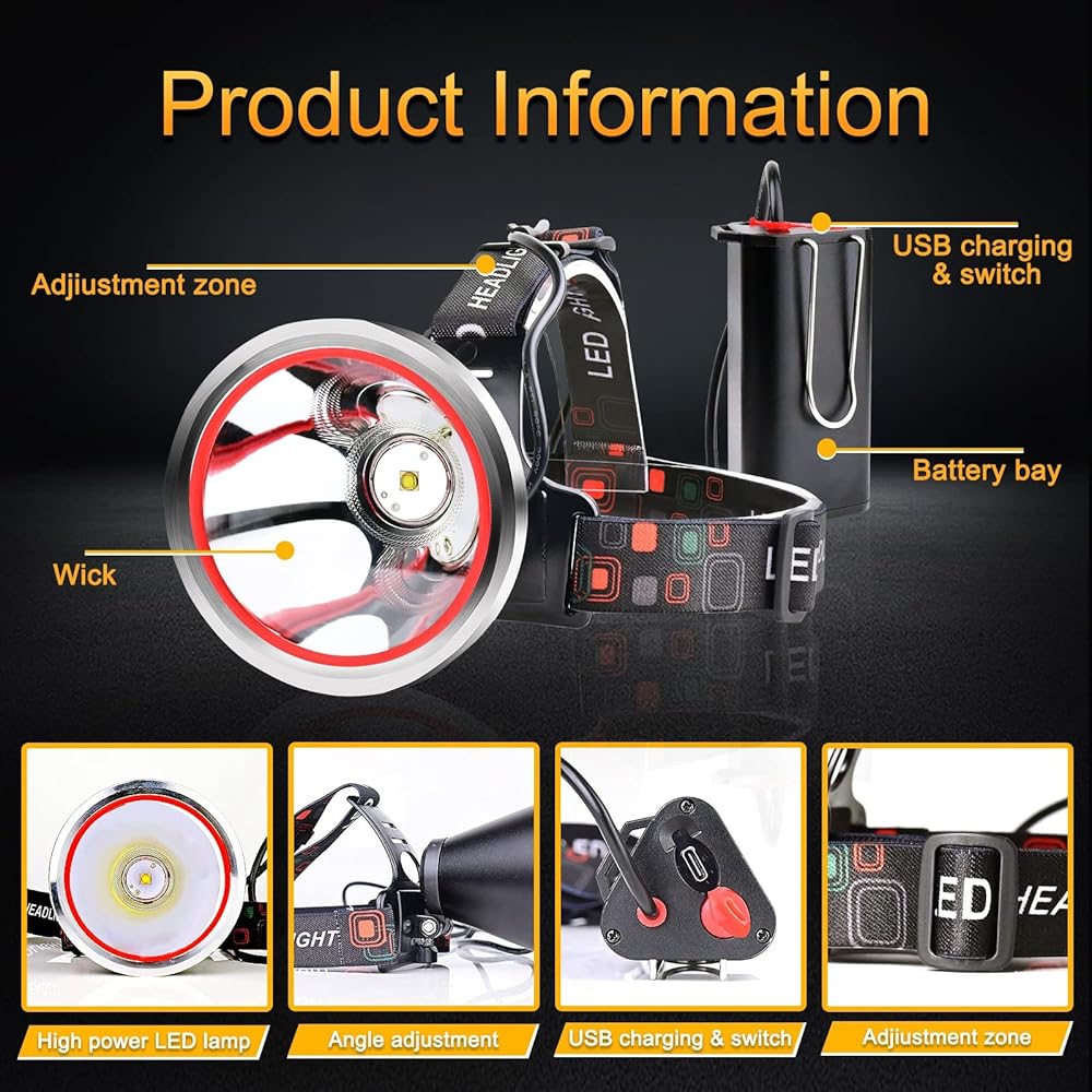 مصباح أمامي فائق القوة: يتمتع هذا المصباح الأمامي الجديد بقوة فائقة مع مسافة سعة بطارية كبيرة تبلغ 3280 قدمًا و100000 لومن. يوفر لك المزيد من الرؤية المحيطية لتلبية احتياجاتك. إنه مثالي لصيد الأسماك، والجري، والتخييم، والمشي لمسافات طويلة، وركوب الدراجات، وإصلاح السيارات، والعمل، والتسلق، والمغامرة في الهواء الطلق أو حالات الإضاءة الكبيرة الأخرى