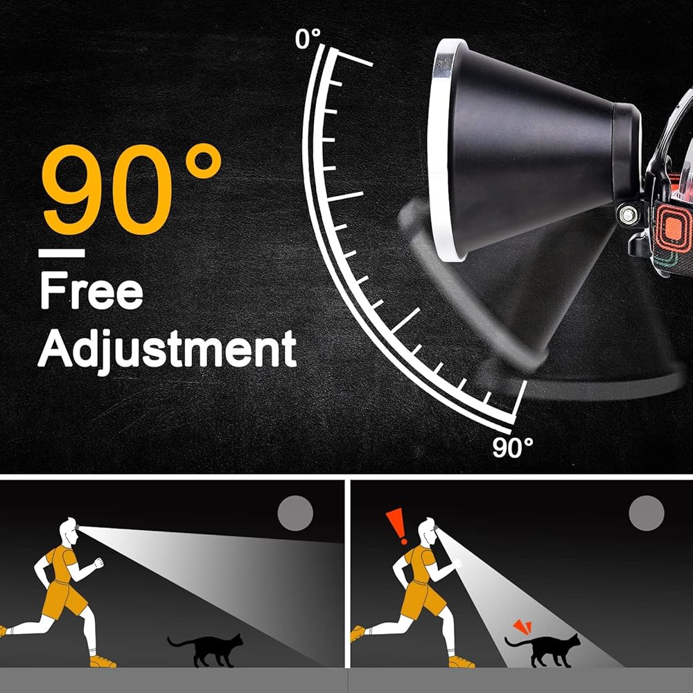 تصميم منفصل قابل للتعديل بزاوية 90 درجة: يتيح لك المصباح الأمامي المزود بقاعدة المصابيح الأمامية القابلة للتعديل بزاوية 90 درجة تركيز الضوء حيثما تريد. تصميم منفصل للمصابيح الأمامية والبطارية، يقلل من وزن الرأس بحزام الكتف أو ثبته حول خصرك. الحشوة الواقية الخارجية أكثر راحة في الارتداء وسهلة الحركة