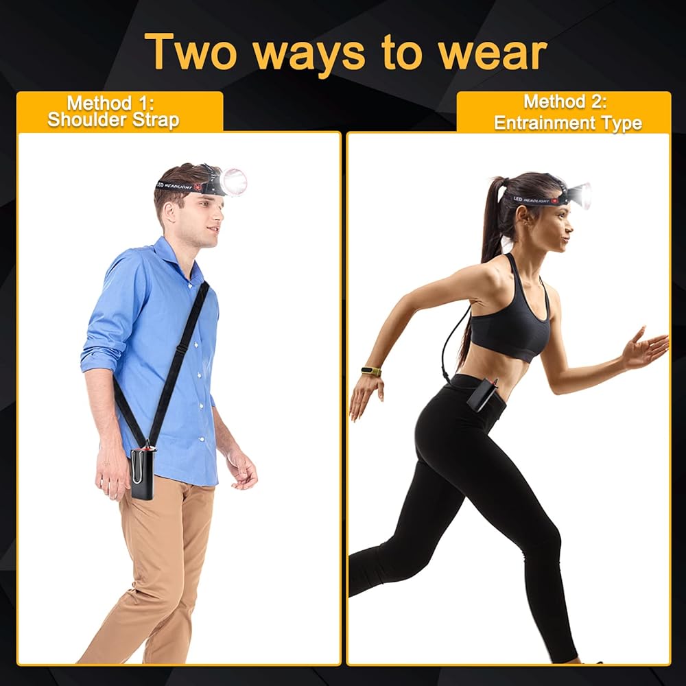 المصباح الأمامي القابل للفصل: تعمل حزمة البطارية الخارجية على تقليل الحمل على رأسك وتسمح لك بالاسترخاء على رأسك. يمكن ربط حزمة البطارية ذات السعة الكبيرة بخصرك أو تعليقها على كتفك