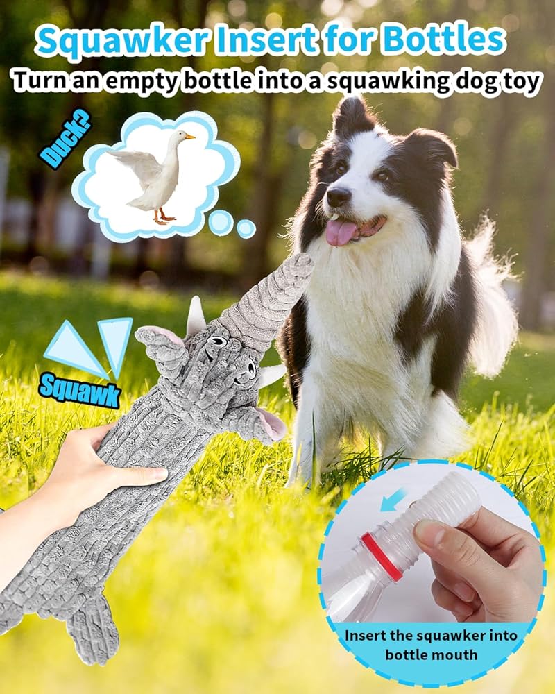لعبة الكلب 3 في 1 مع صرير وزجاجة مقرمشة وورق مجعد: قمنا بدراسة ألعاب الكلاب الموجودة في السوق وابتكرنا لعبة صرير فريدة من نوعها تجمع بين الصوت الصرير والورق المجعد والزجاجة البلاستيكية المقرمشة. نظرًا لأن الكلاب لديها خاصية المضغ الطبيعية المتمثلة في حب مضغ الزجاجات، فإن هذه اللعبة أكثر جاذبية لرغبة الكلب في المضغ وفضوله للعب. وتسمح اللعبة بإعادة استخدام زجاجات المياه البلاستيكية، مما يساهم في حماية البيئة والاستدامة البيئية.
