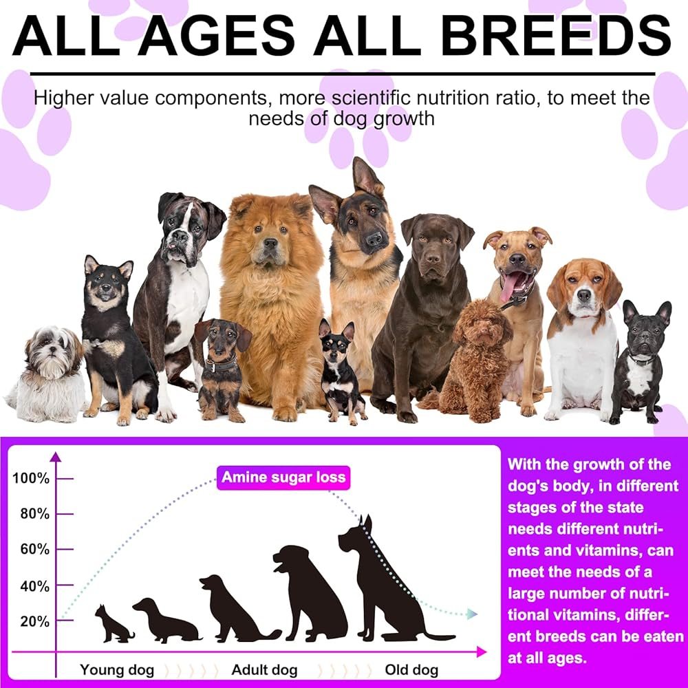 【مناسبة لجميع الأعمار والأحجام】- الفيتامينات والمكملات الغذائية الخاصة بالجراء لدينا مناسبة لجميع أحجام الكلاب: صغيرة ومتوسطة وكبيرة. هذه المضغ مناسبة للكلاب من جميع الأعمار والجراء والكلاب الكبيرة.