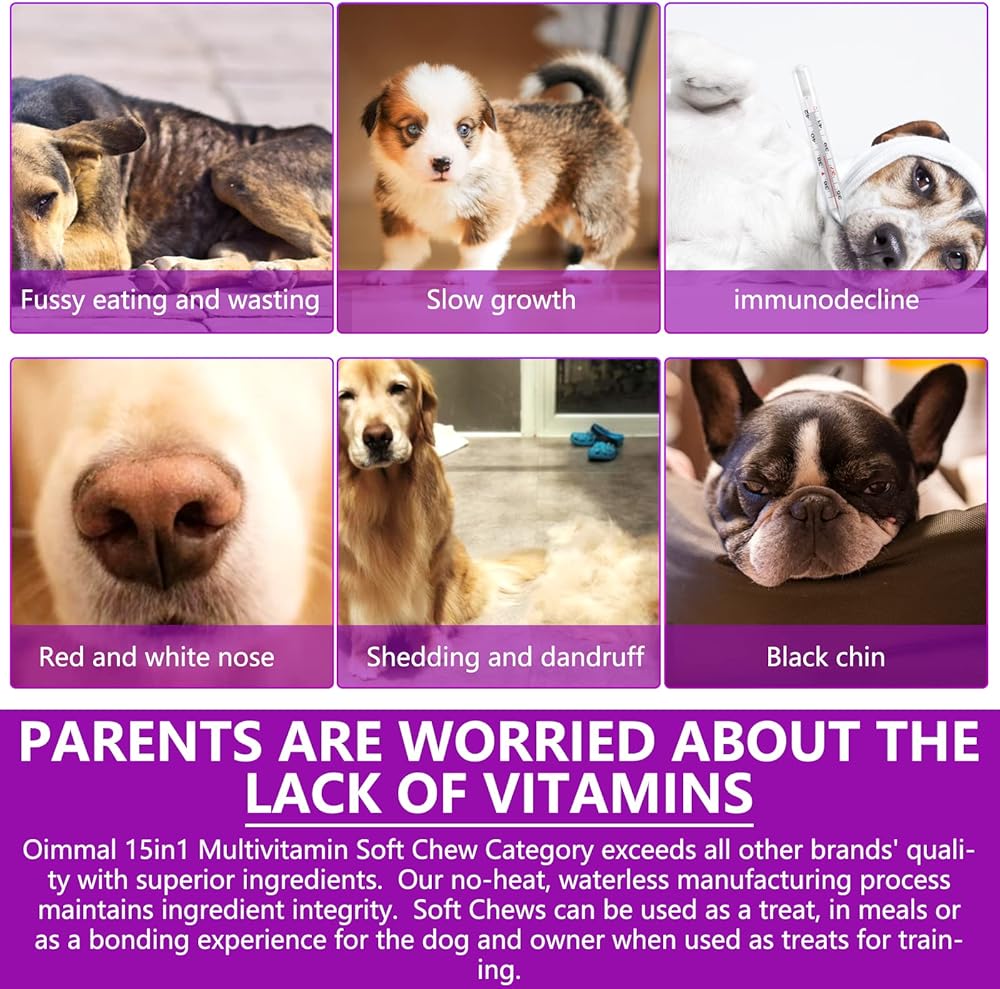 15 في 1 فيتامينات متعددة للكلاب قابلة للمضغ مع الجلوكوزامين، فيتامينات للكلاب مع المناعة والهضم والطاقة والأمعاء والجلد والمفاصل ودعم صحة القلب، فيتامينات متعددة لكبار السن والجرو للكلاب - 150 قطعة مضغ