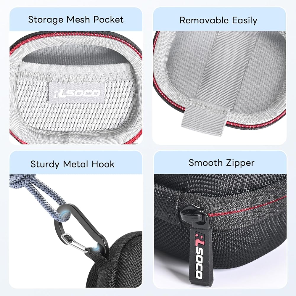 Exquisite Design -- The compact design is perfect for placing your devices, the top lid of the case comes with a mesh pocket which can store your eartips, charging cable and other accessories, while the bottom of the case comes with a strap to help you quickly remove your earbuds without snagging them.