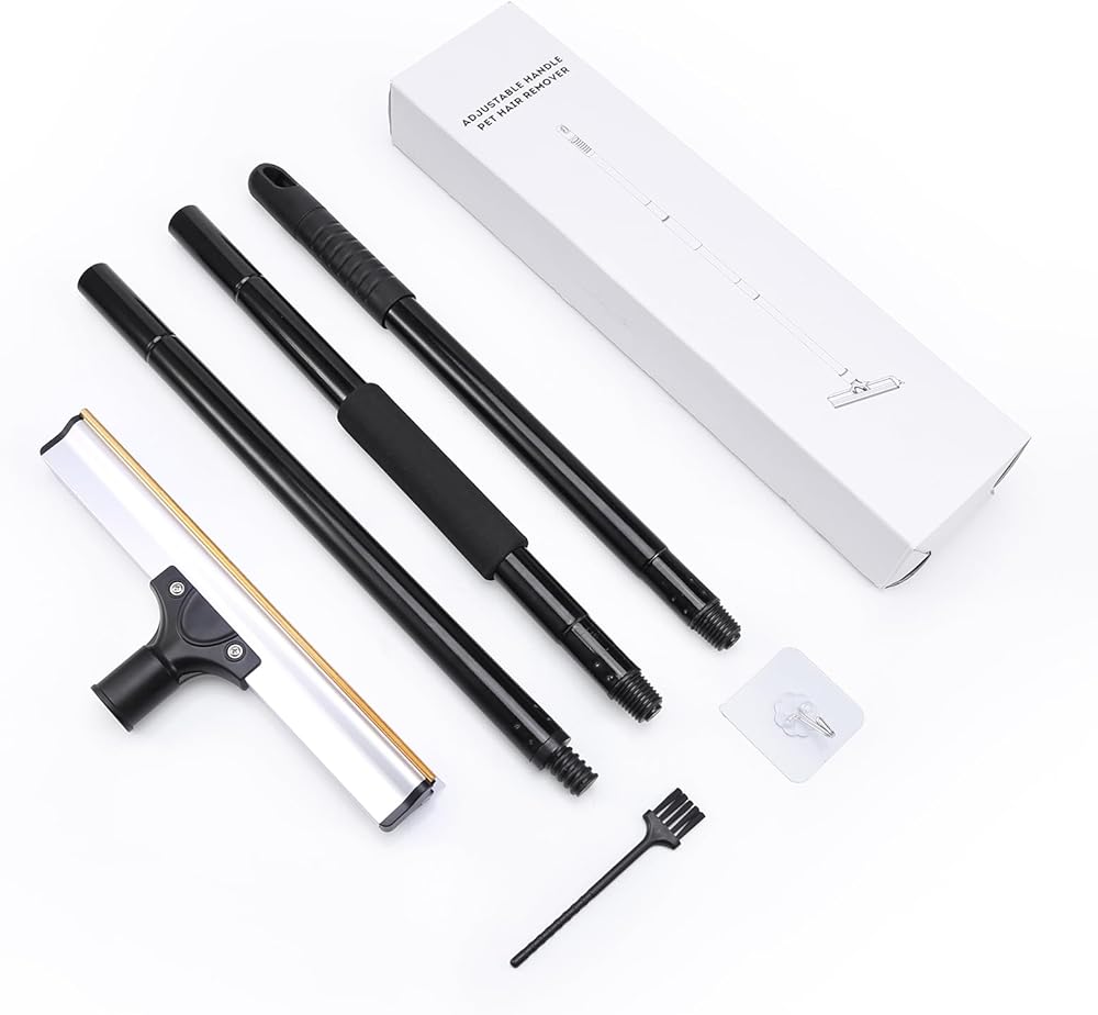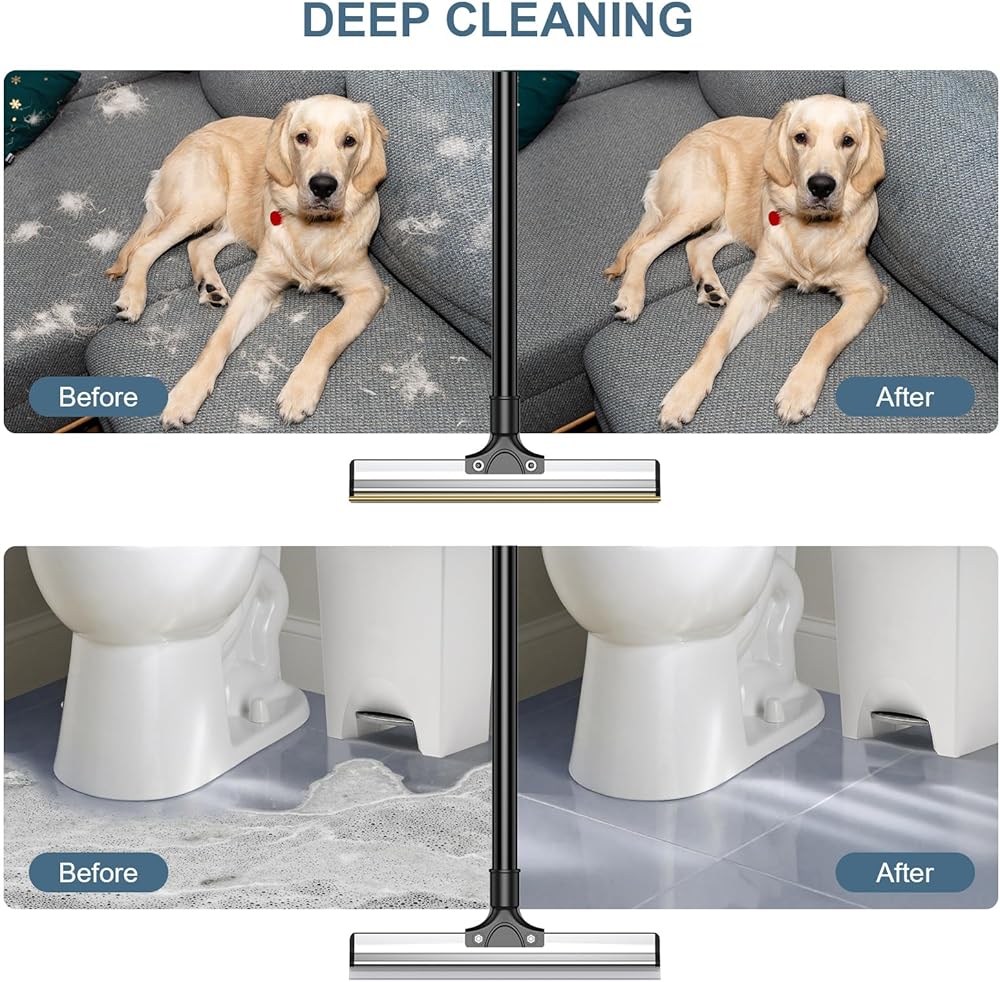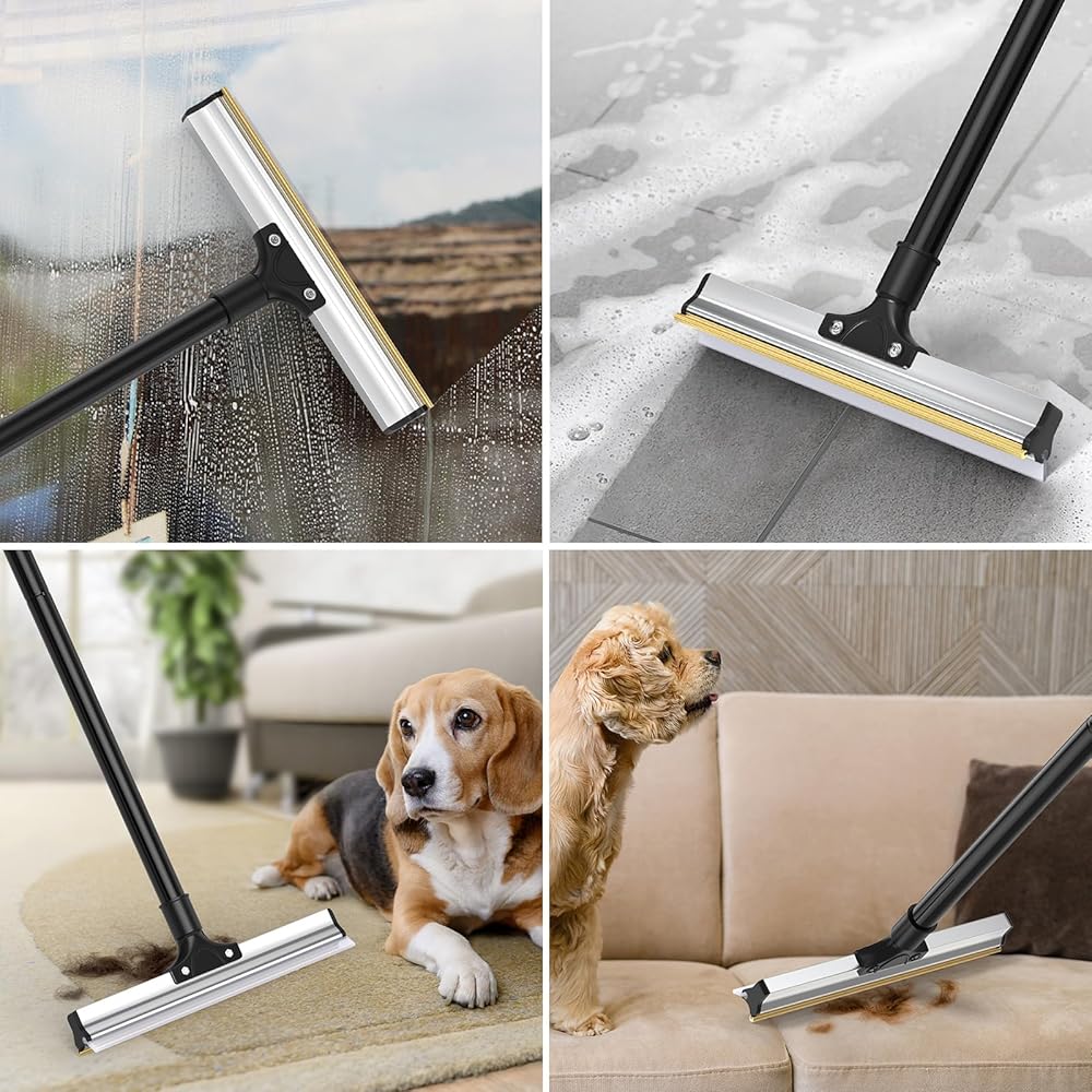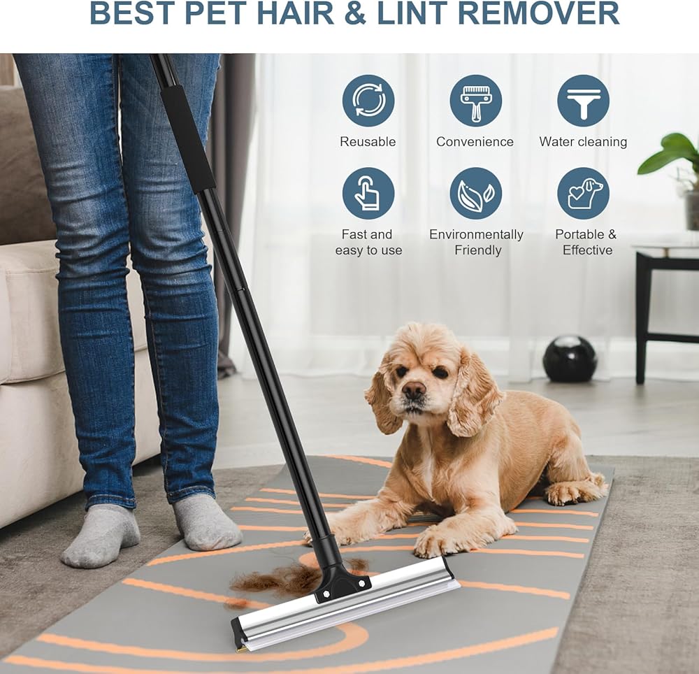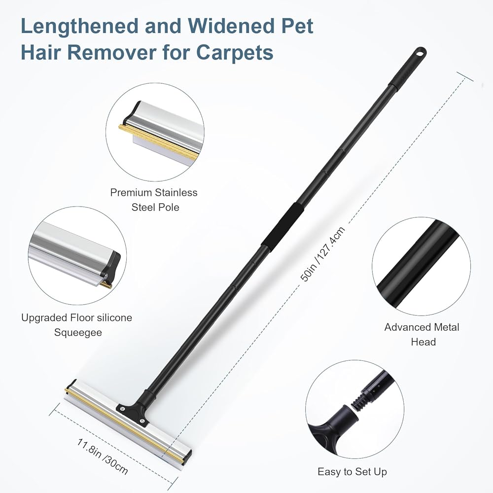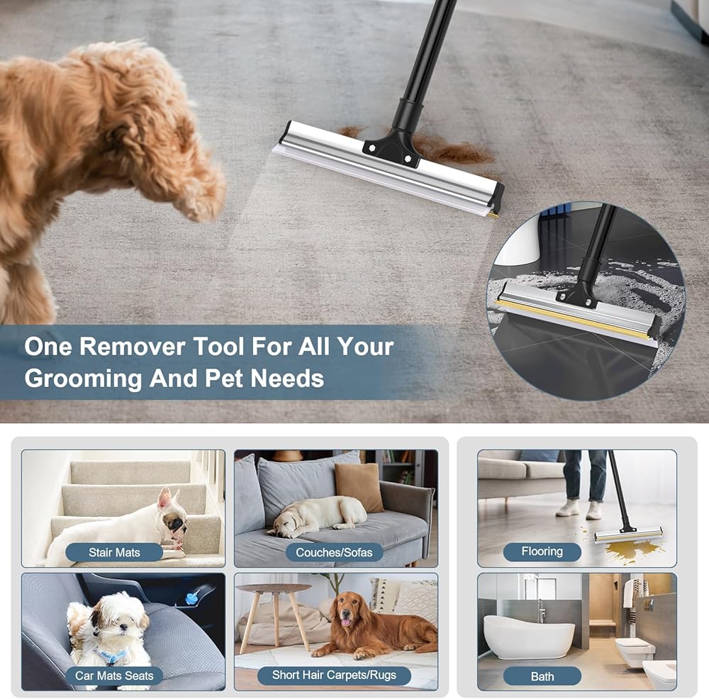 مزيل شعر الحيوانات الأليفة المطور للسجاد، مزيل شعر الكلاب قابل لإعادة الاستخدام مع مقبض تلسكوبي قابل للإزالة، رطب وجاف، مجموعة مزيل شعر الحيوانات الأليفة للأرائك والسجاد والأرضيات والأخشاب الصلبة