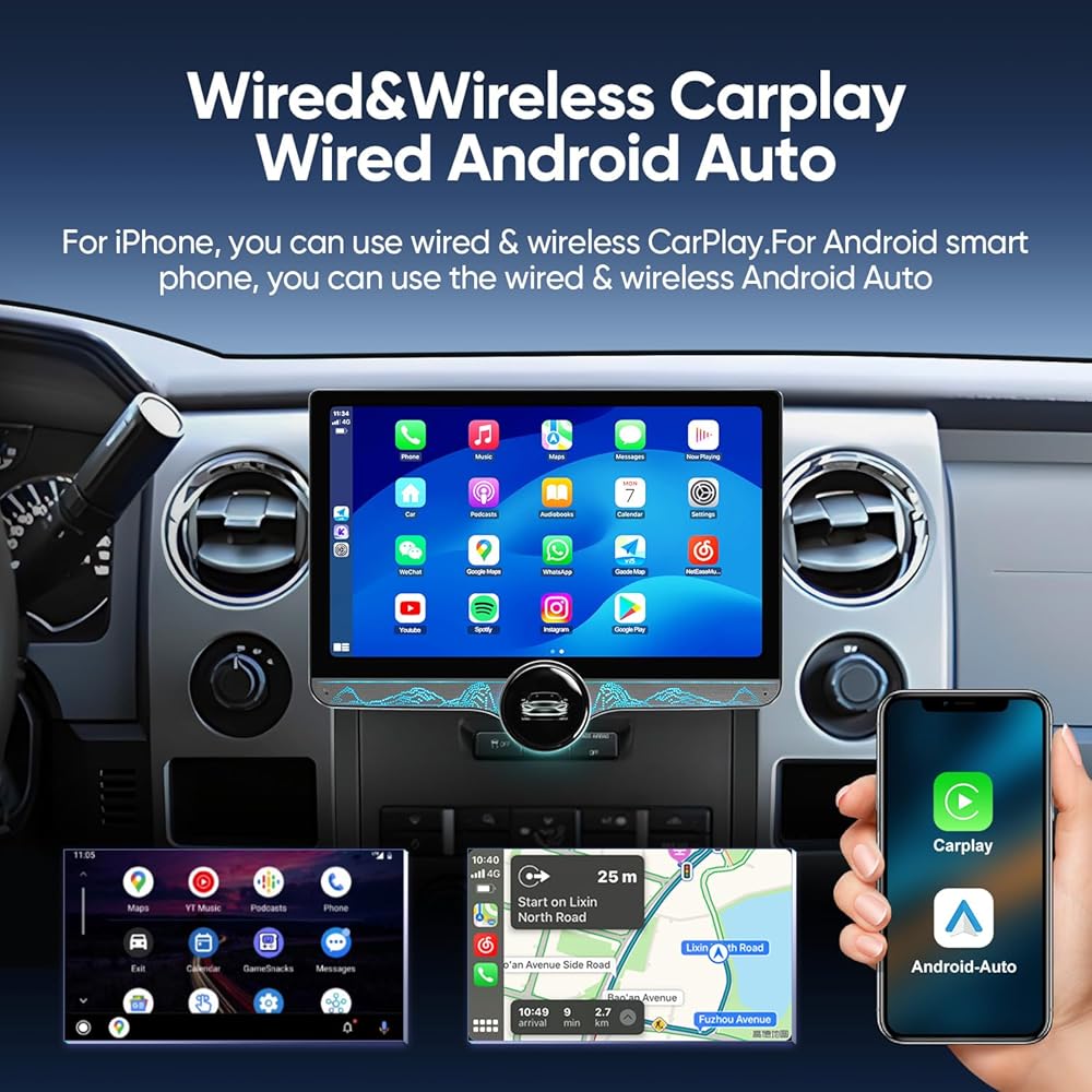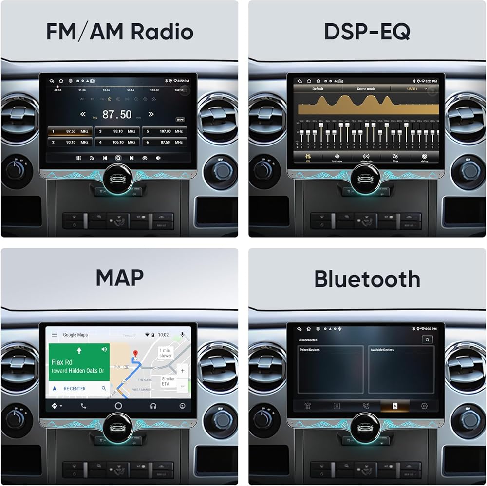 Enhance For Your Ford F150 with this Premium 11.5-Inch Android Car Radio Stereo. Tailored for Ford F150 2009 2010 2011 2012 2013 2014, this Android car stereo brings cutting-edge functionality and ease of use to your driving experience. Powered by Android 13.0, an 8-core processor, 4GB RAM, and 64GB storage, this stereo offers superior performance, handling multiple applications seamlessly for an efficient and enjoyable driving experience. From navigating to entertainment and smartphone connectivity, everything you need is right at your fingertips. High-Definition 2000x1200 Touchscreen Display with Dual Knob Control With a large 11.5-inch 2000x1200 HD touchscreen, enjoy sharp visuals and clear navigation maps, video playback, and apps in exceptional clarity. Dual knobs provide easy access to volume and tuning adjustments, making it user-friendly and safe for on-the-go adjustments without distraction. Smart Connectivity with CarPlay and Android Auto This stereo offers seamless integration with both CarPlay and Android Auto, allowing you to access GPS navigation, music streaming, hands-free calling, and more with just a simple connection to your smartphone. Enhance your safety and convenience on the road with these hands-free, voice-activated features. Rear 1080P Camera & Exhaust Fan for Enhanced Safety and Durability Included is a 1080P rear camera that offers sharp, clear images for confident and safe reversing and parking. An integrated exhaust fan keeps the stereo cool, reducing the risk of overheating and extending the stereo's lifespan, especially during long drives or heavy use. 5G WiFi and Steering Wheel Control for Ultimate Convenience Stay connected with 5G WiFi, providing faster speeds for app downloads, streaming, and real-time navigation. Plus, steering wheel control allows you to manage audio and calls without taking your hands off the wheel, keeping your focus on the road. Easy Installation and Perfect Fit Designed to fit the Chevy Silverado and GMC Sierra, this car stereo's design matches your vehicle's interior, allowing quick and straightforward installation without modifying your vehicle's original structure.